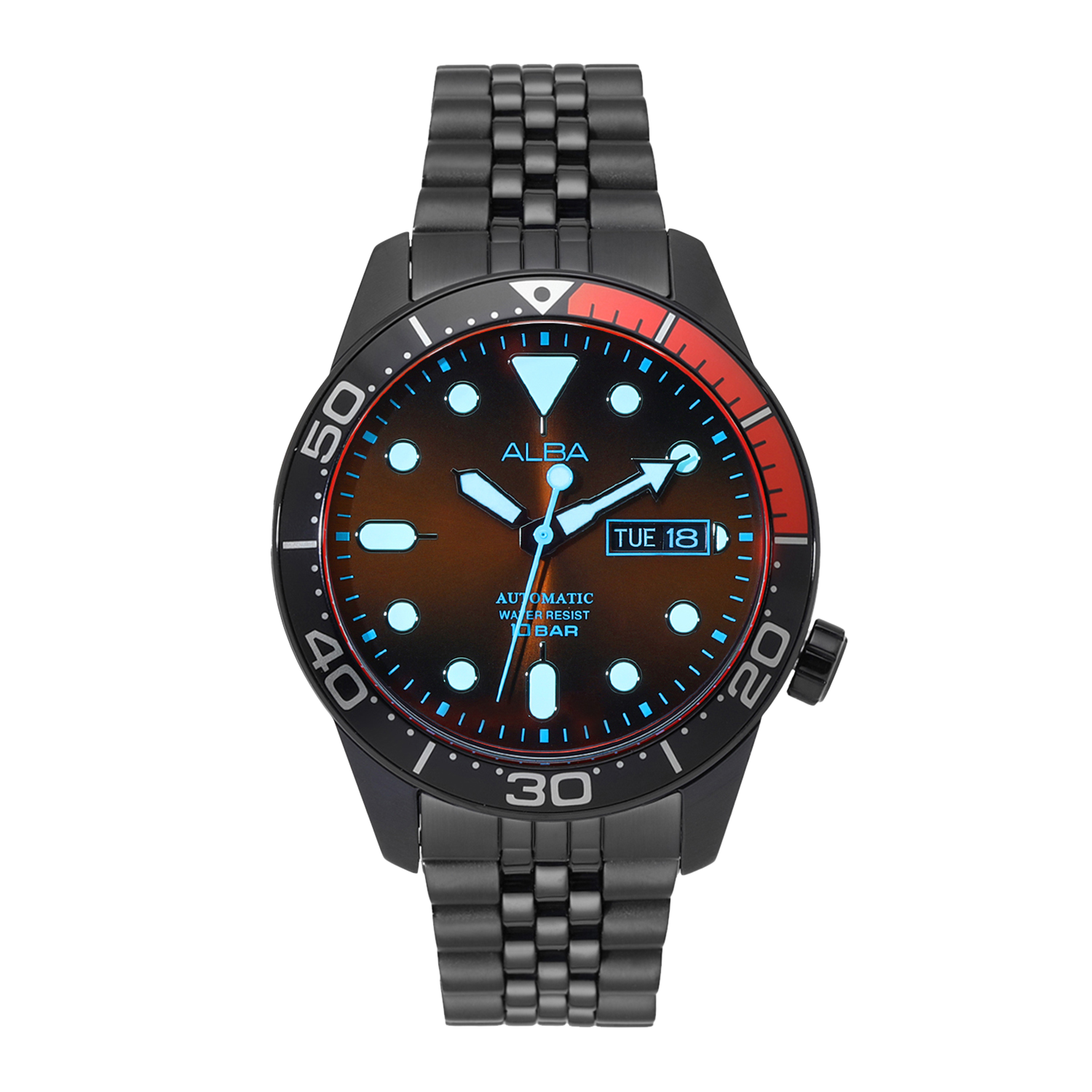 Alba AL4209X1 Black & Orange Gradation Dial Tokyo Neon Mechanical