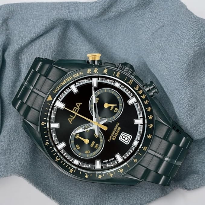Experience the precision and elegance of Alba's Black Dial Chronograph Watch A4B013X1. Crafted with meticulous attention to detail, this watch is powered by Seiko Watch Corporation, Japan for incredible performance. Elevate your time-telling game with Alba's exceptional design and Japanese craftsmanship.
