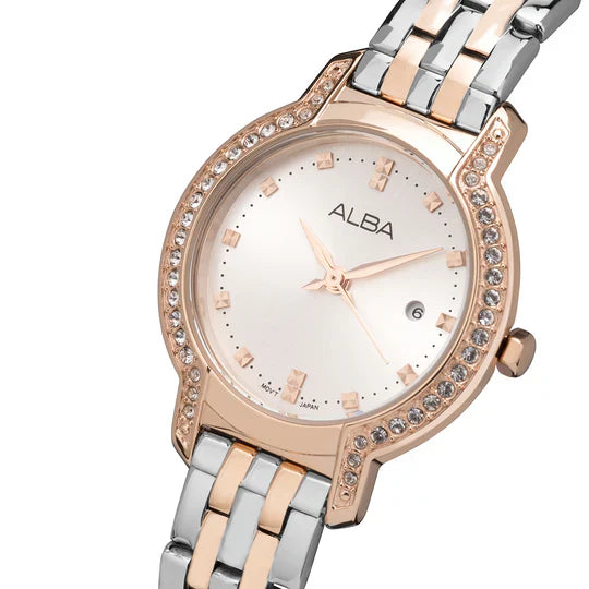 Experience timeless elegance with the Alba Watch, featuring a rose gold case encrusted with crystals. Crafted with precision, its stainless steel case and minimalist dial exude sophistication. The luminous hands ensure easy readability in any lighting. This versatile timepiece seamlessly transitions from day to night, making it an ideal accessory...