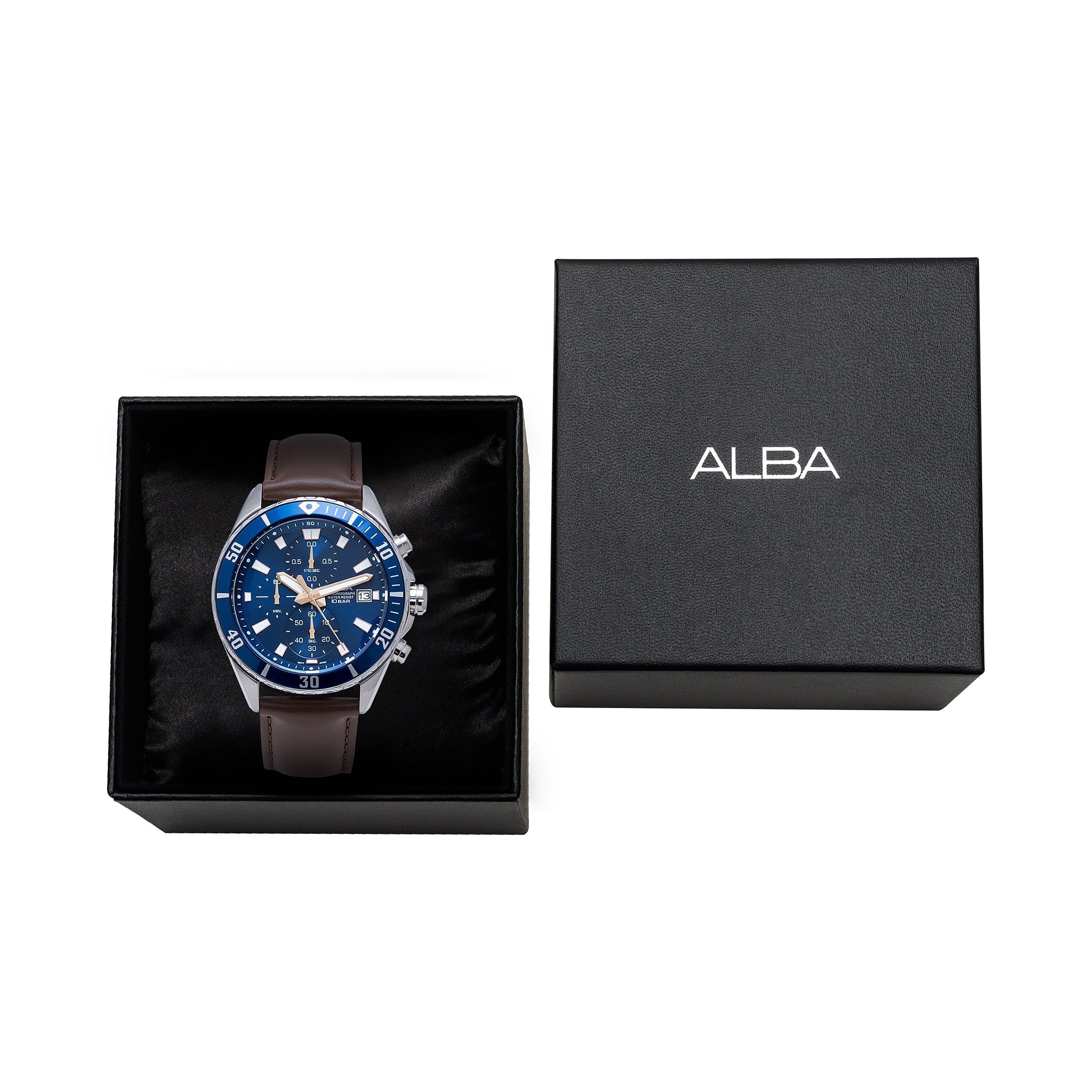 Alba AM3813X1 Blue Dial Chronograph With Leather Strap
