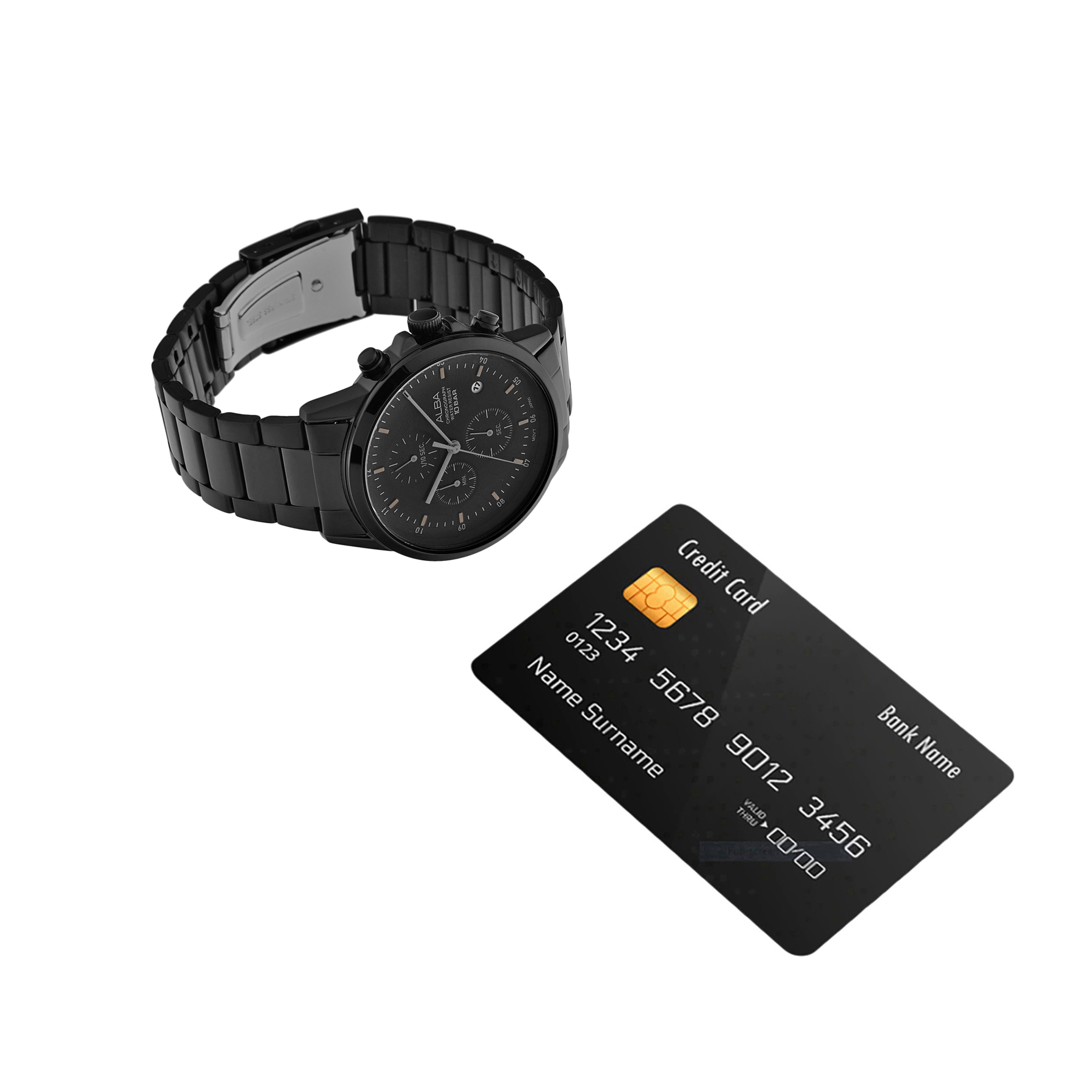 L/G: Men's Dial: Black Functions: Chronograph with hour, minute, second, sub-hands, 60 minute chronograph accurate to 1/10 second Split time Date: Date Water Resistant: 10 Bar Material: Stainless Steel case Band: Stainless Steel Glass: Mineral Crystal Case Size: 42mm
