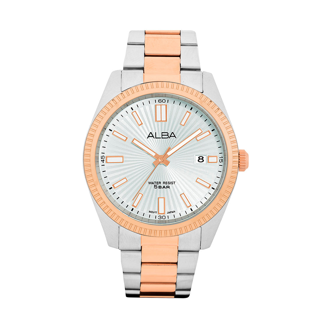 Gender : MEN'S Material : Stainless Steel Case Size : 42mm Glass : Mineral Crystal Case Back : Screw Case Back Luminous : Luminous Hands & Markers Band : Stainless Steel Water Resistance : 5 bar Movement Calibre : VJ42 Dual Tone Watch Strap