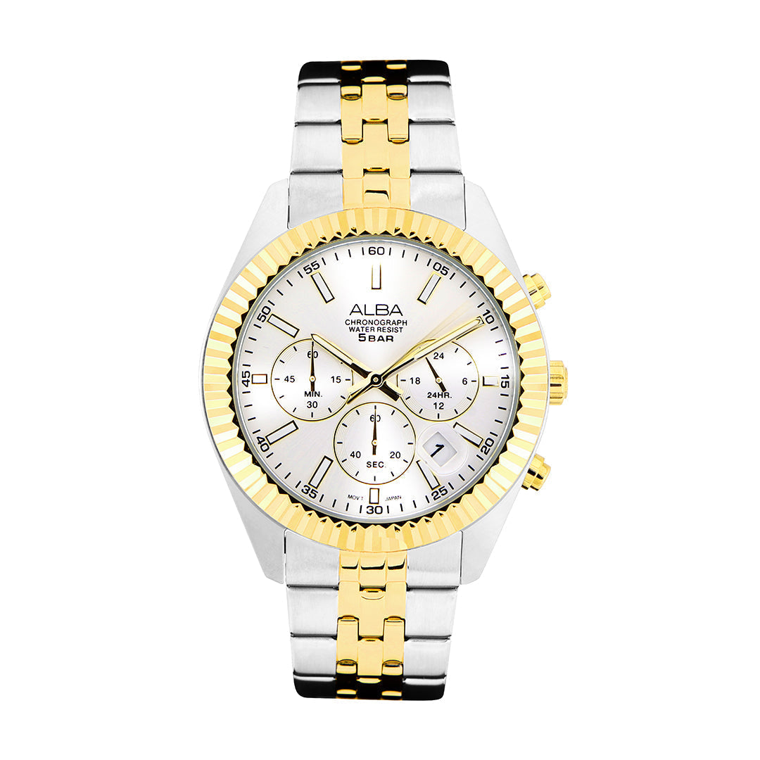 Alba AT3H14X1 White+Gold Dial Chronograph