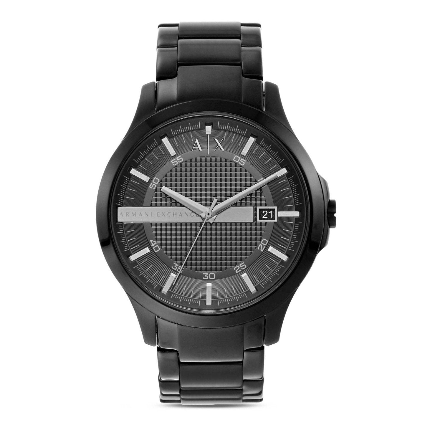 Impactful and essentially trendy, this men's analog watch gift set from the House of Armani Exchange will add to your class factor. This stylish Hampton series men's gift set includes a black IP watch with tonal, textured dial and Y-link bracelet, paired with a black leather cuff bracelet accented with...