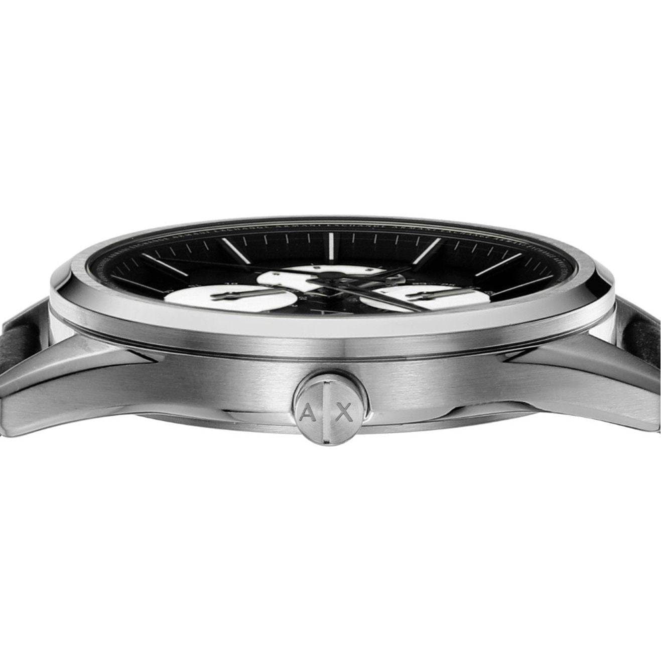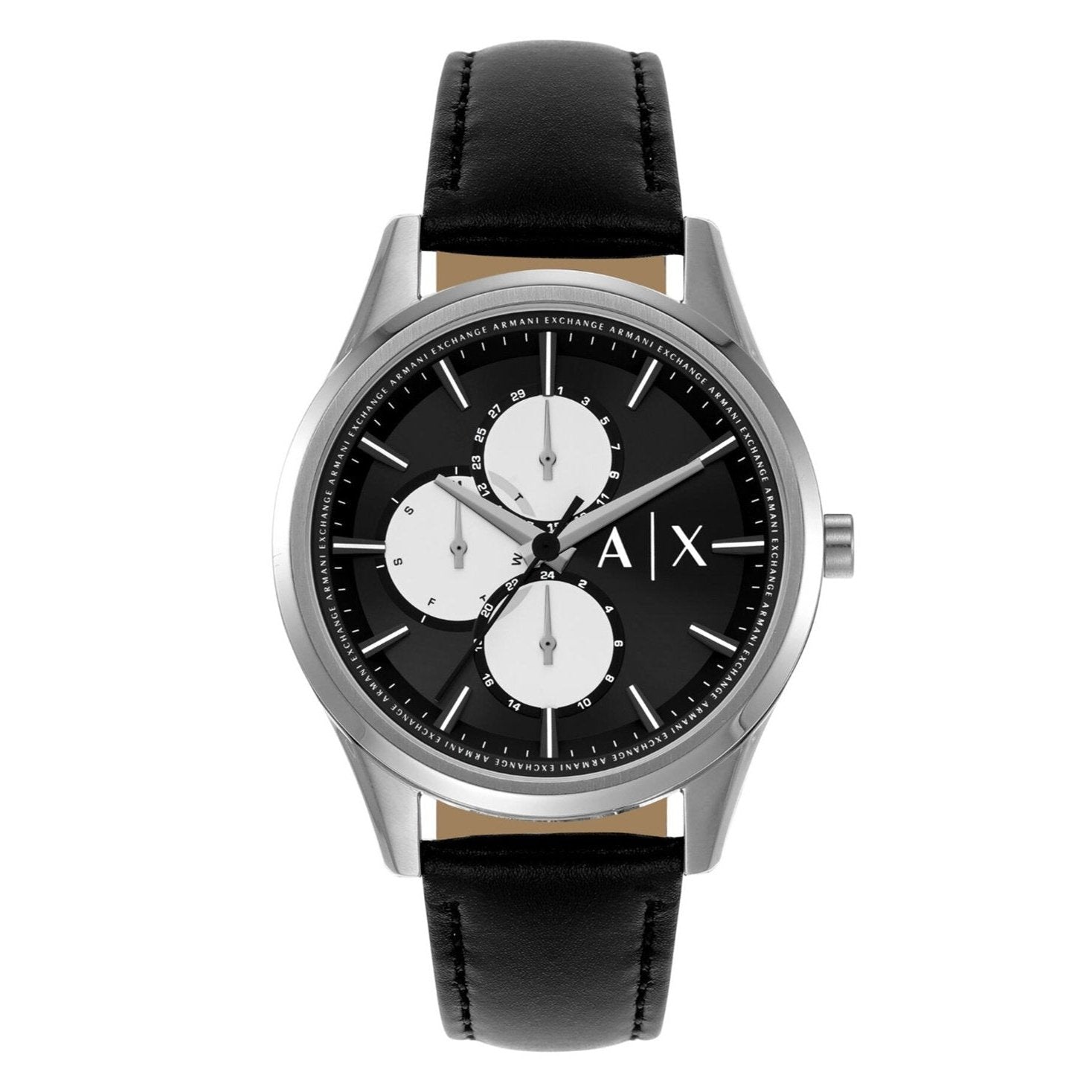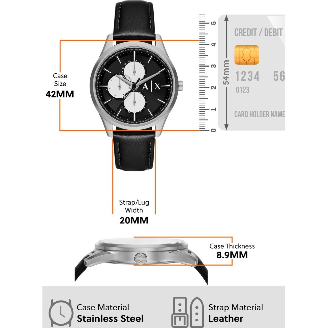 Carry great technology wrapped around your wrist with this stylish men's analog watch from Armani Exchange. The multi round dial is protected by a mineral glass. It has a crown for time adjustment. The genuine leather strap comes in a black hue that further elevates the look of the timekeeper....
