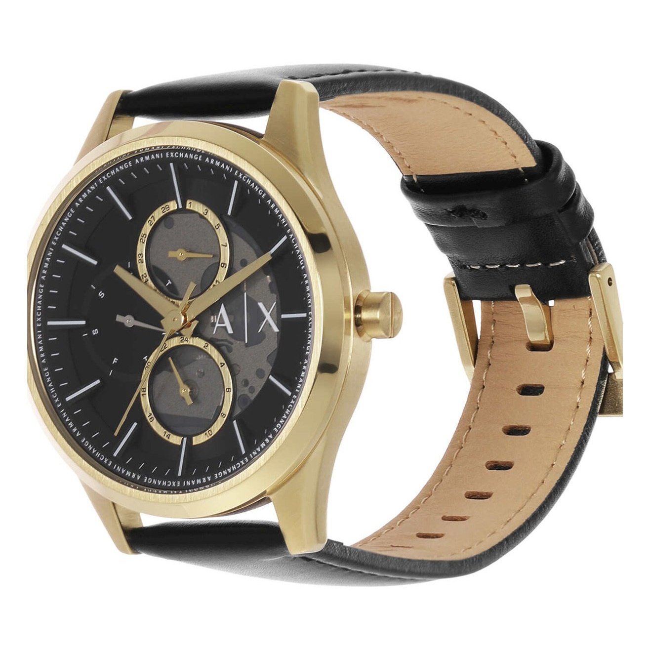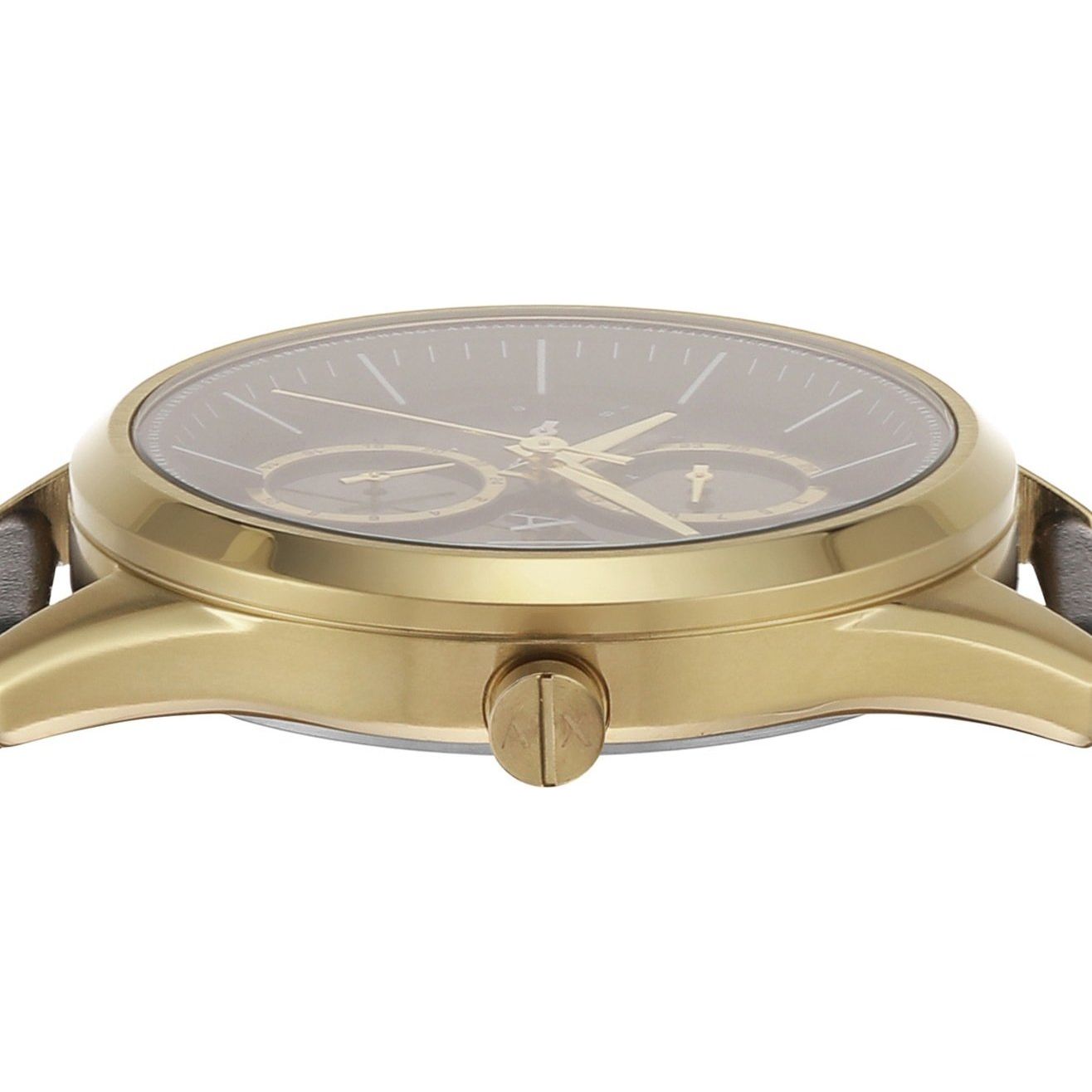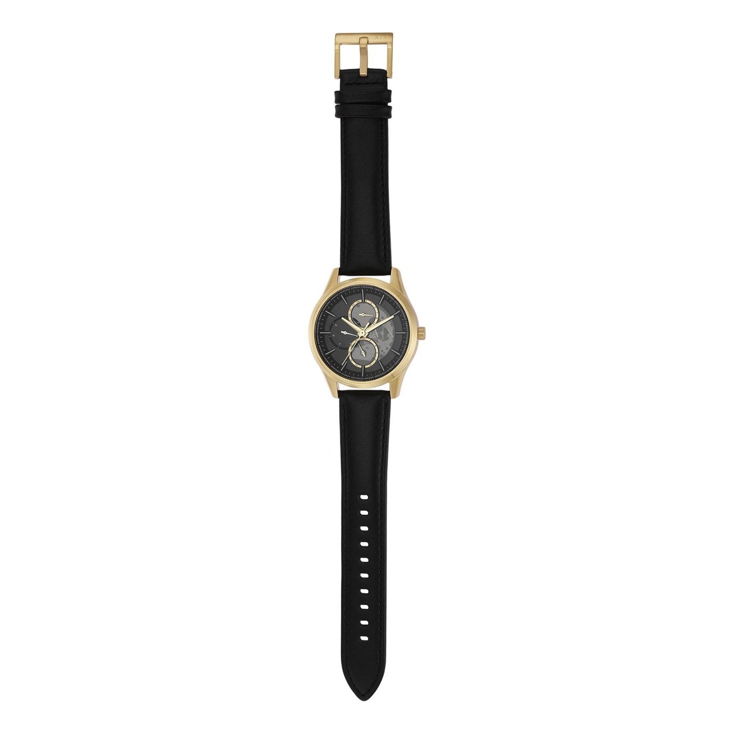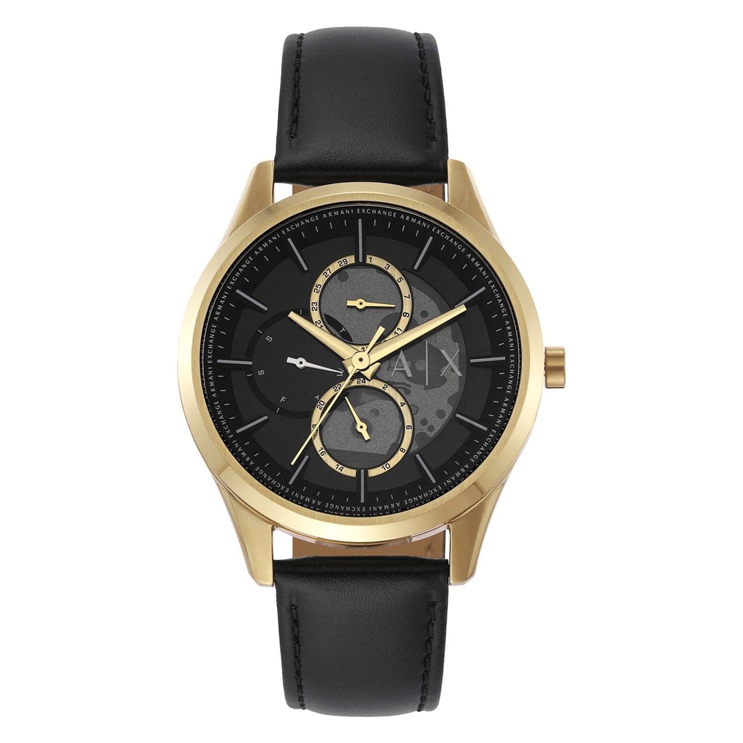 Enhance your style quotient by wearing this men's analog watch from Armani Exchange. The black round dial is protected by a mineral glass. It has a crown for time adjustment. The genuine leather strap comes in a black hue that further elevates the look of the timekeeper. Armani Exchange's 42mm...
