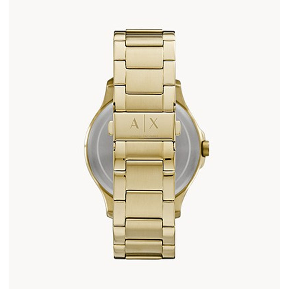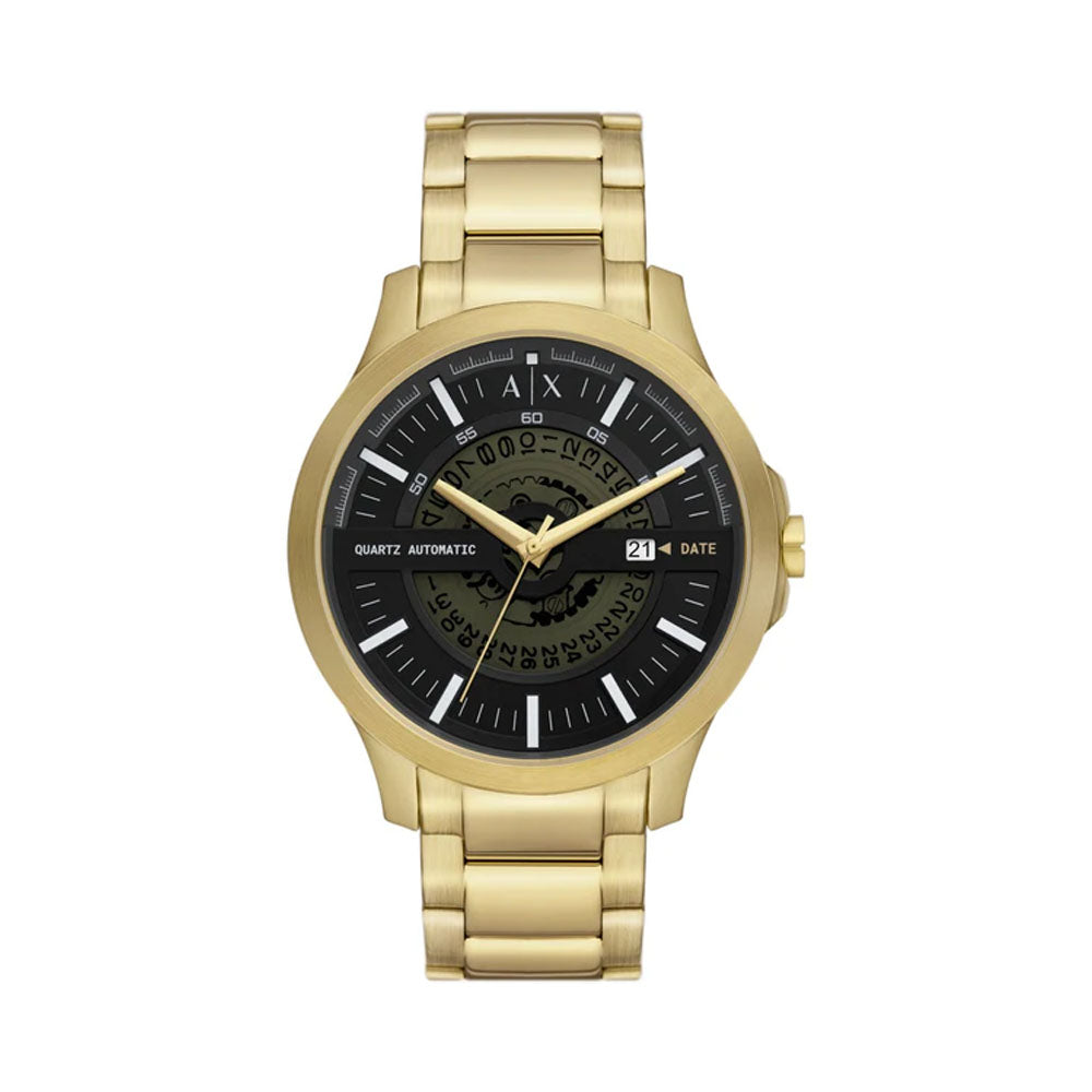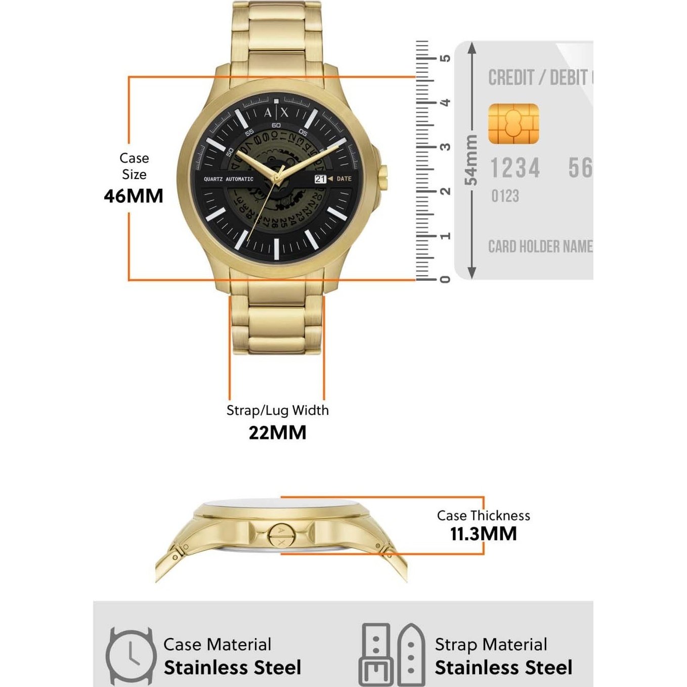 Blending functionality and style, this watch from Armani Exchange is a must-have. This 46 mm watch features a round dial with new automatic quartz three-hand date movement. This 50m water-resistant watch ensures to be your timeless possession.