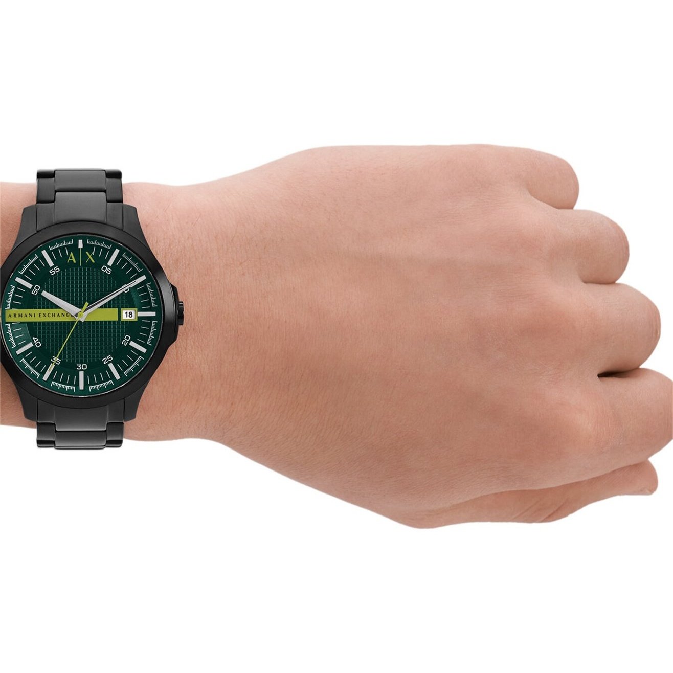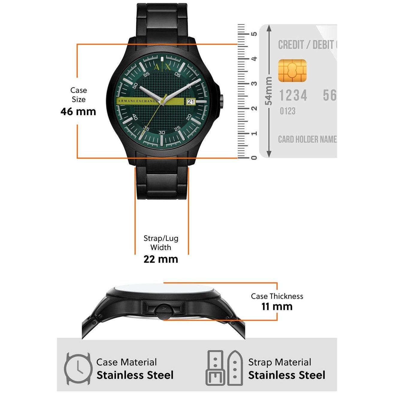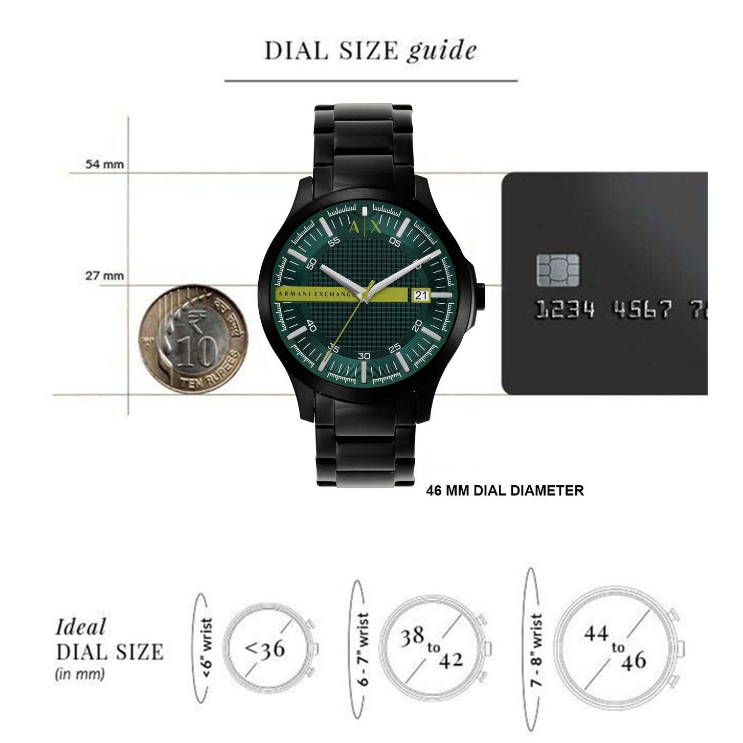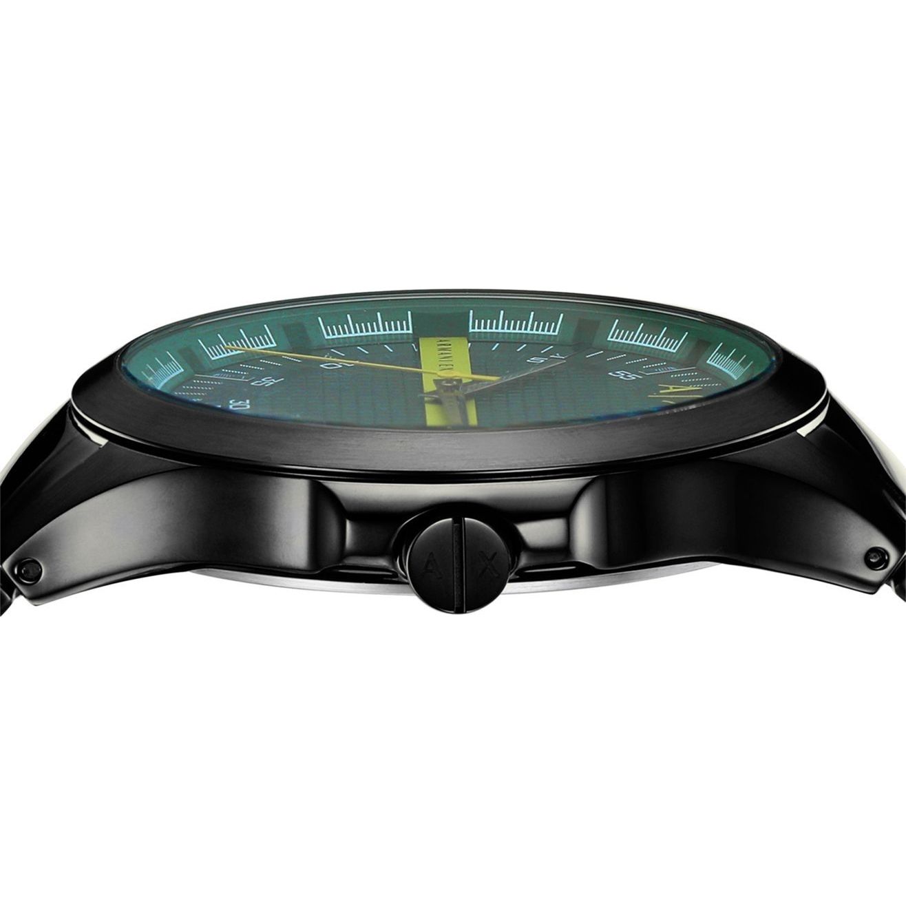 Discover the modern and stylish 46 mm watch by Armani Exchange. Its distinctive cd finish and matte, textured dial create a unique and attractive aesthetic. The stainless steel bracelet complements the watch's overall look while the three-hand date movement ensures accurate timekeeping.