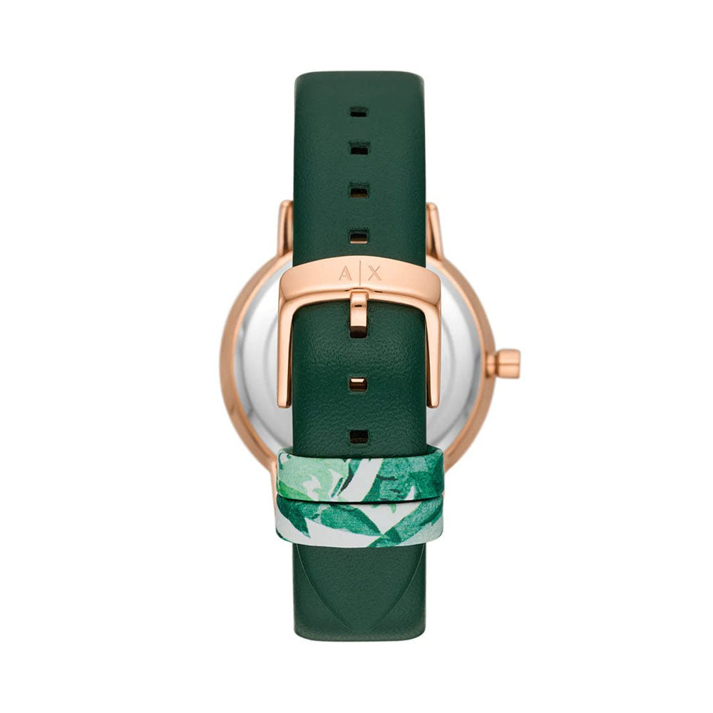 Designed to suit your fashion needs Armani Exchange watch features a 36 mm feminine dial encased in stainless steel. This dazzling dial features three-hand movement and an ingenious strap in leather that offers a next-level style statement.