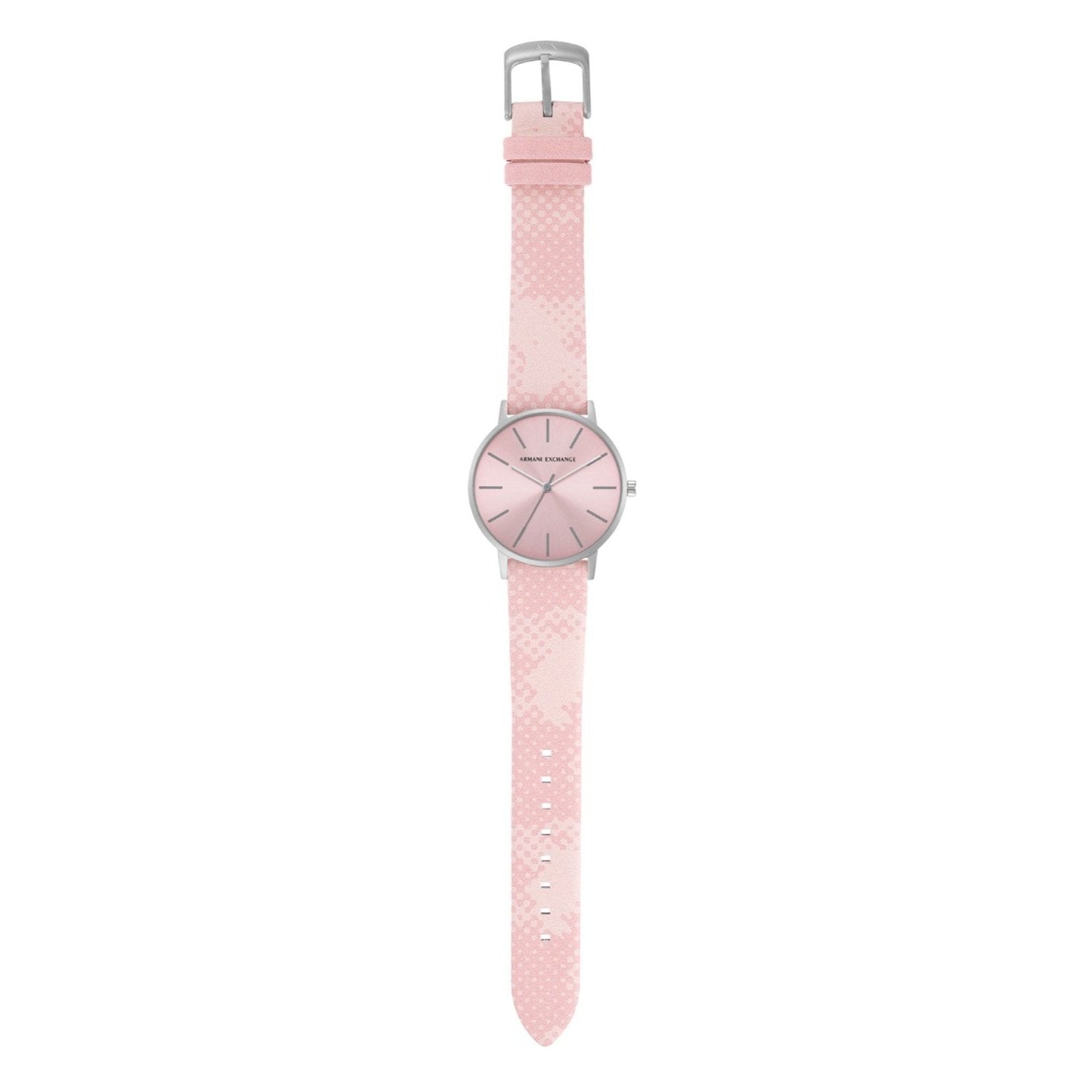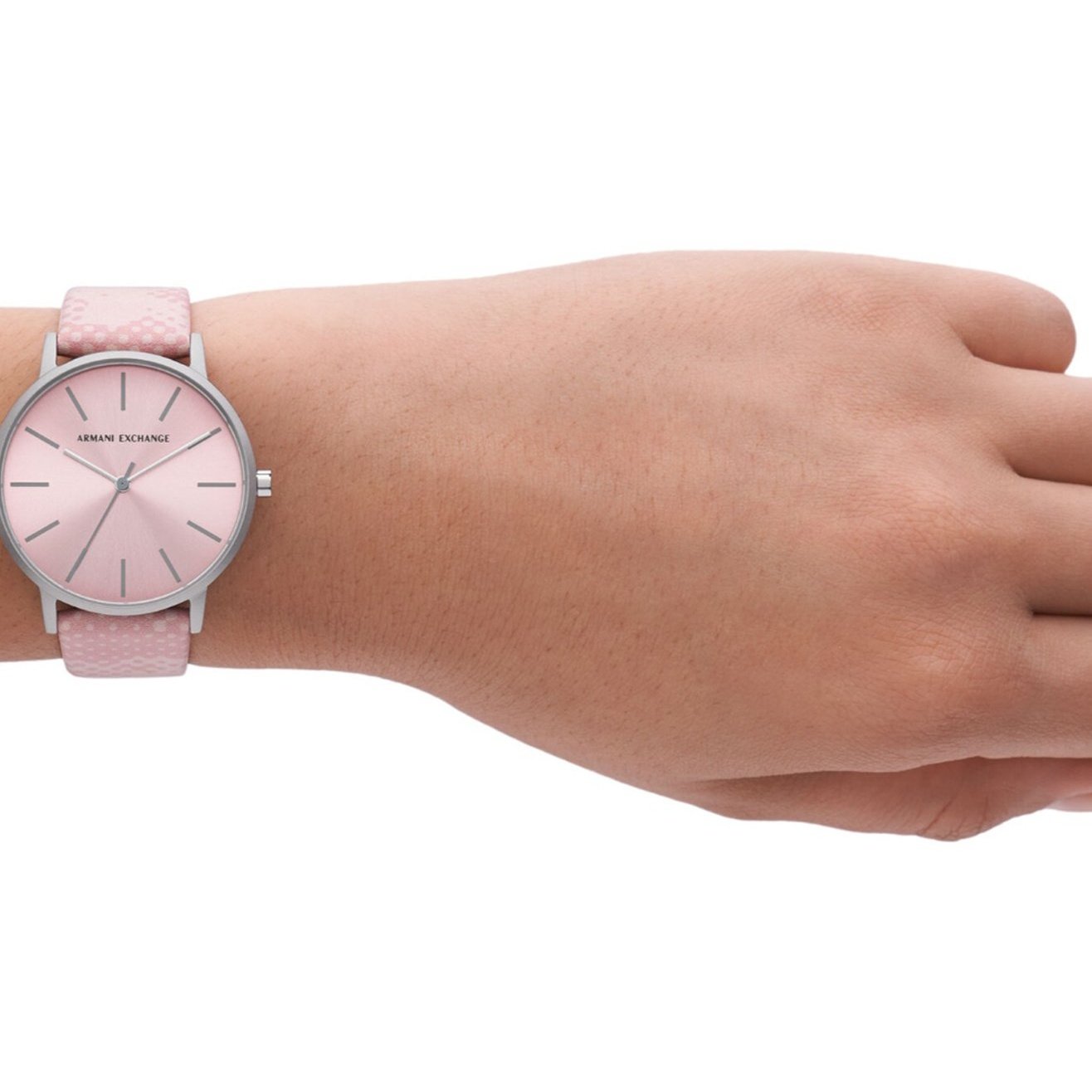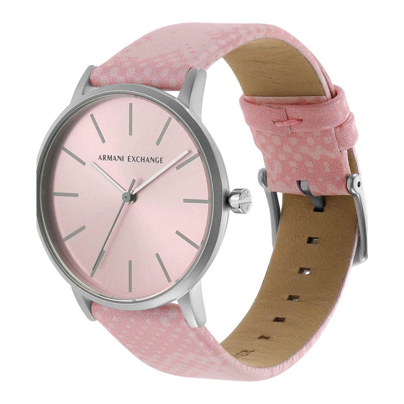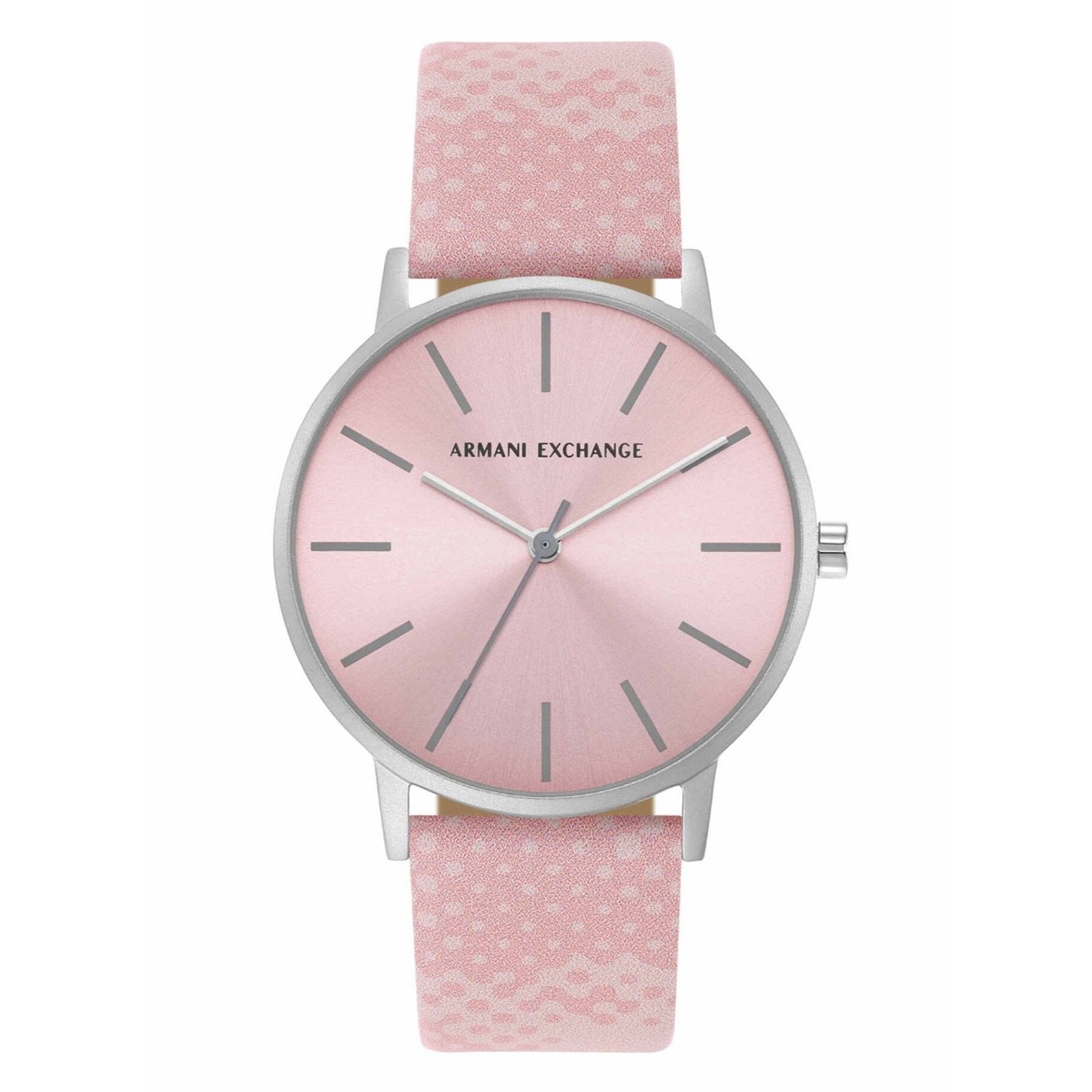 Designed to suit the preference of urban women, this analog watch from Armani Exchange is sure to make a style statement. The pink round dial is protected by a mineral glass. It has a crown for time adjustment. The genuine leather strap comes in a pink hue that further elevates...