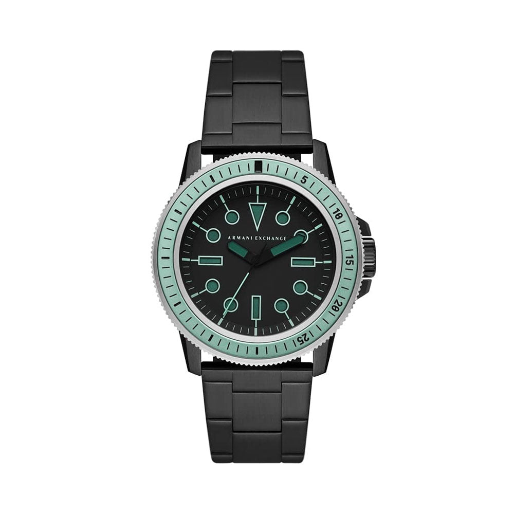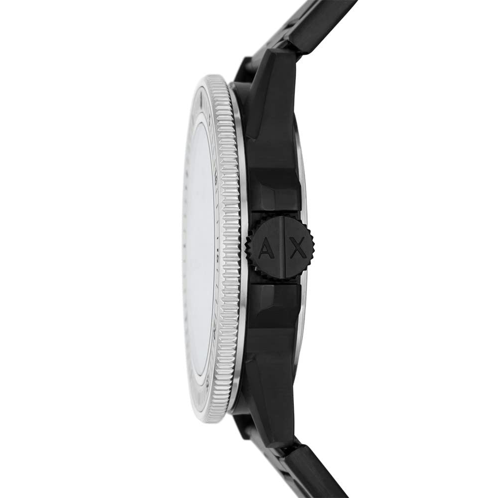 Armani Exchange's 42mm watch features a matte black dial, three-hand movement and black stainless steel bracelet. Armani Exchange watches exude the overall style of the brand and are available in mens and womens collections. Their watches have four basic principles around which they are built and designed, which are attitude,...