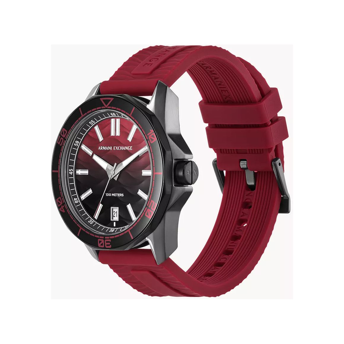 Armani Exchange Three-Hand Date Red Silicone Watch AX1953