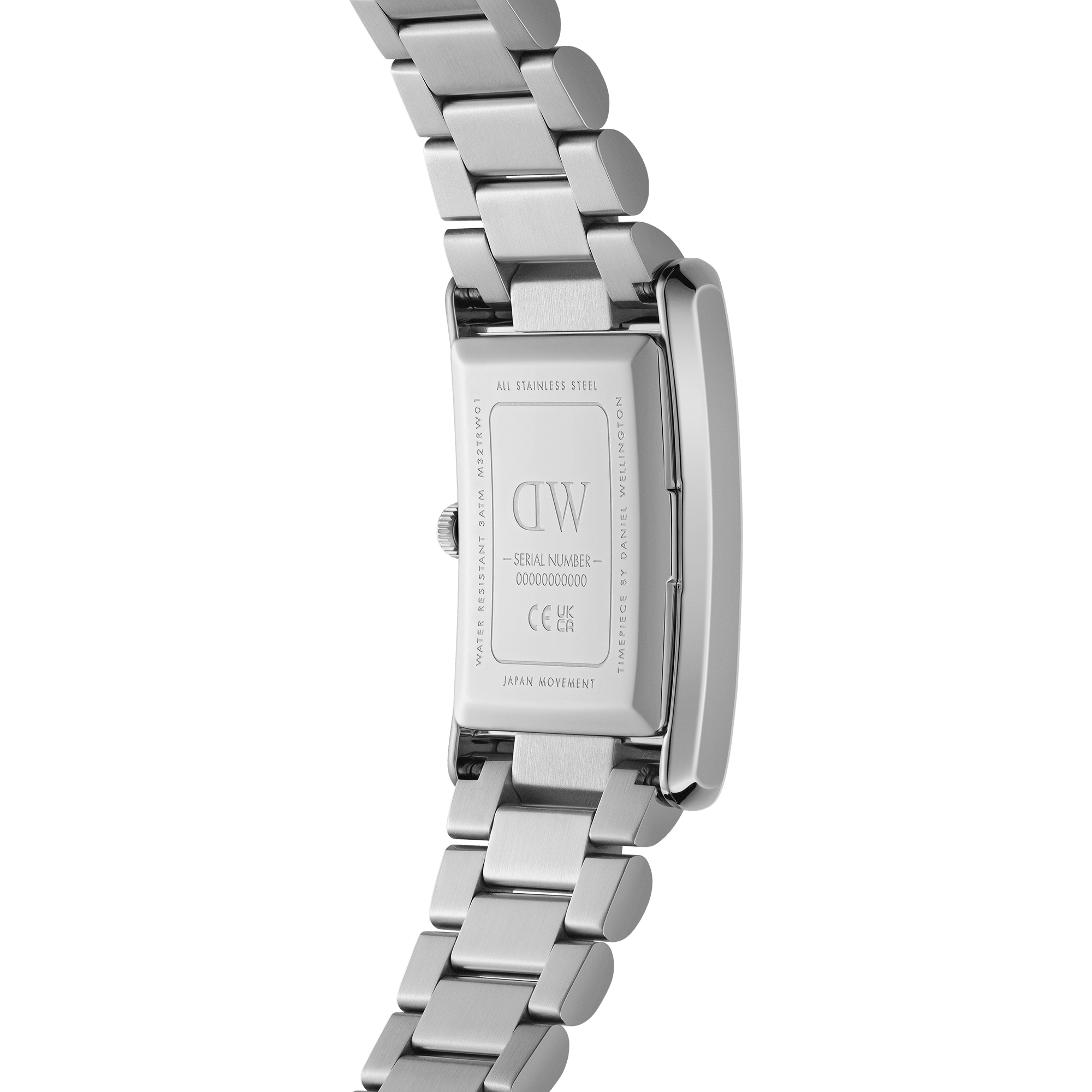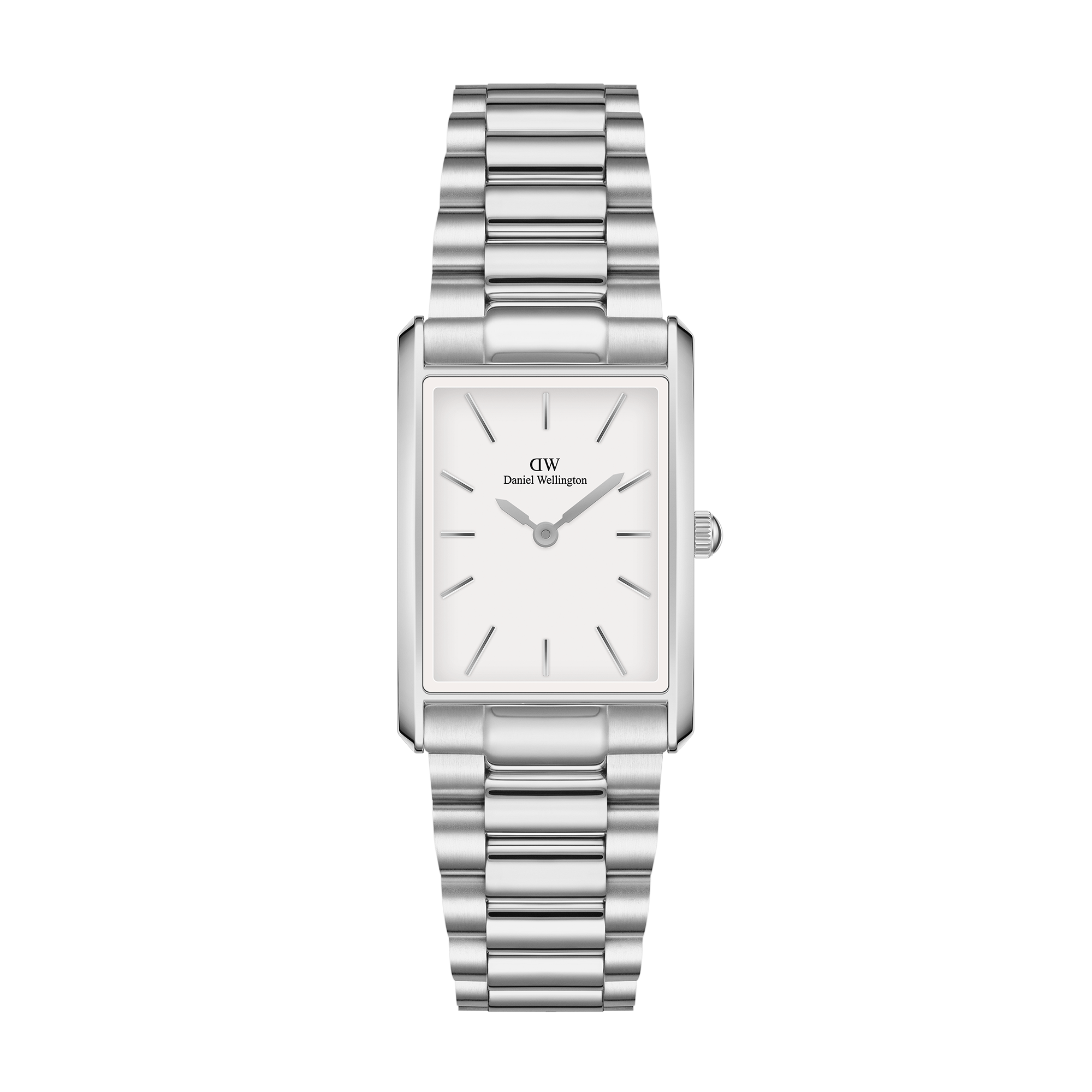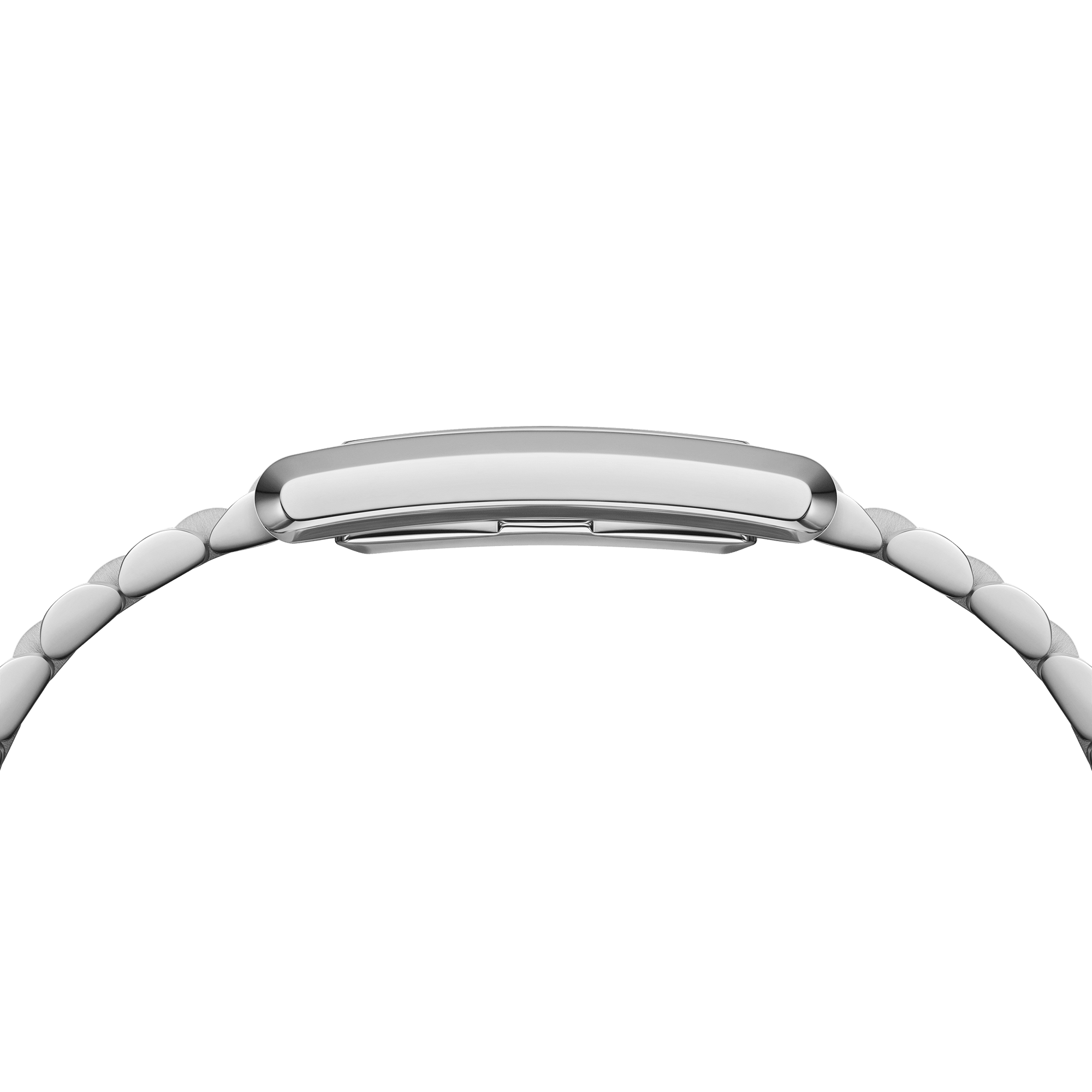 With sleek geometric edges and two sizes to choose from, our Bound collection brings perfect symmetry to your wrist. The curved rectangular case of this silver watch matches the exact width of its 3-link strap—giving you a seamlessly integrated dial.