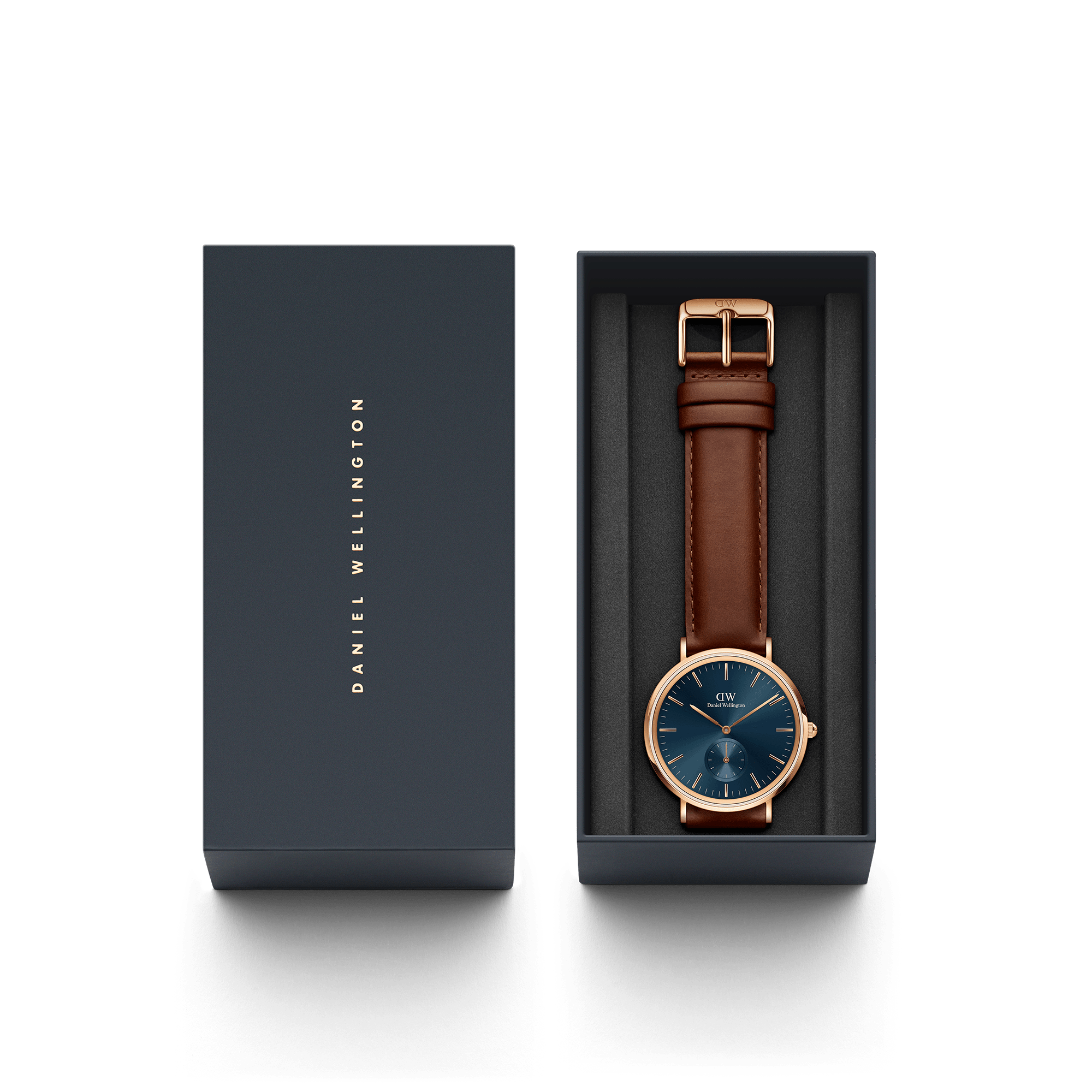Go to the shopThis update to our Classic watch goes one step further with a blue multi-eye dial for you to track down the seconds. Features an interchangeable brown leather strap and rose gold details.