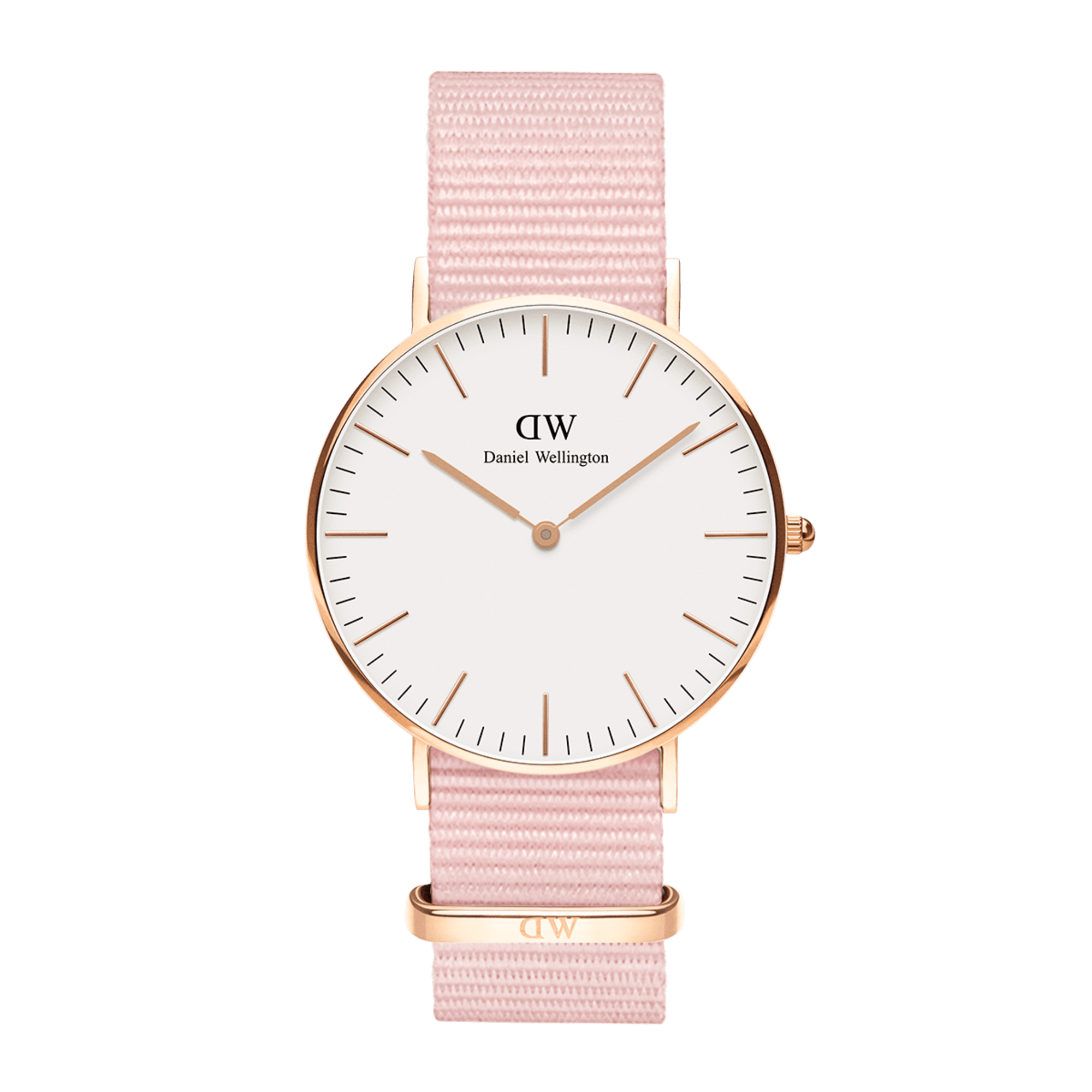 The Classic Rosewater features an eggshell white dial and a charming pink NATO strap. This watch gives your look a subtle, yet eye-catching, pop of color that is ideal for the spring season. The delicate pink strap, coupled with chic rose gold details, makes the Rosewater your go-to accessory for when you need to brighten up an outfit.