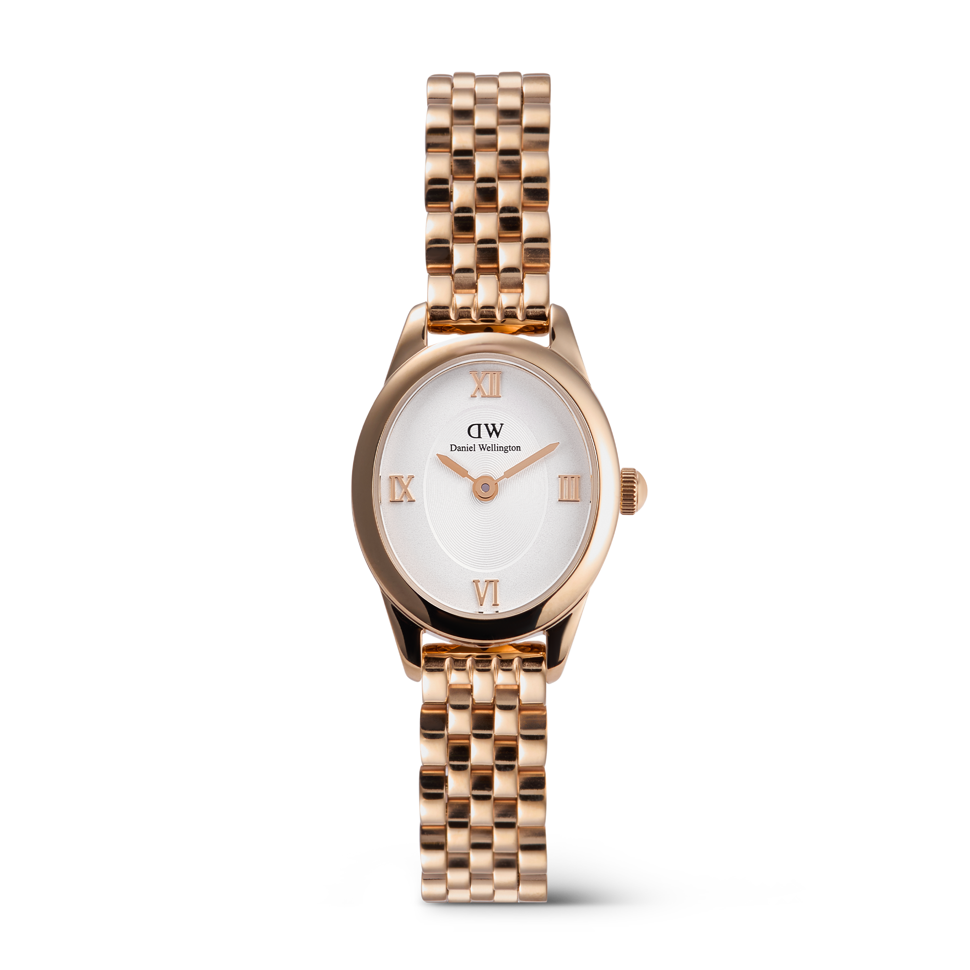 The Ophelia Mini Watch features a dial with an elegant oval shape that diverges from traditional watches. This one-of-a-kind new female watch offers a lot of newness. It comes with a newly designed beans link strap and a butterfly buckle. The slightly heavier oval case enhances its elegant silhouette, while the tapered lugs ensure a smooth transition to the link bracelet. The watch boasts metal Roman numerals atop a disc pattern at the center of the sunray dial, and both the case and bracelet are polished to a bold, shimmering finish.