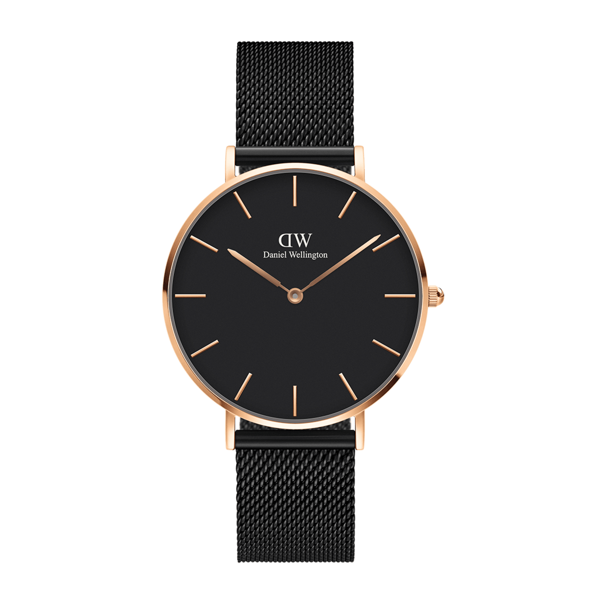 ELEGANT AND DISTINGUISHED. Enter the new season in timeless fashion with Petite Ashfield. This ultra-thin watch rests delicately on the arm and features a matte black mesh strap and a sophisticated black dial. Available with details in rose gold or silver.