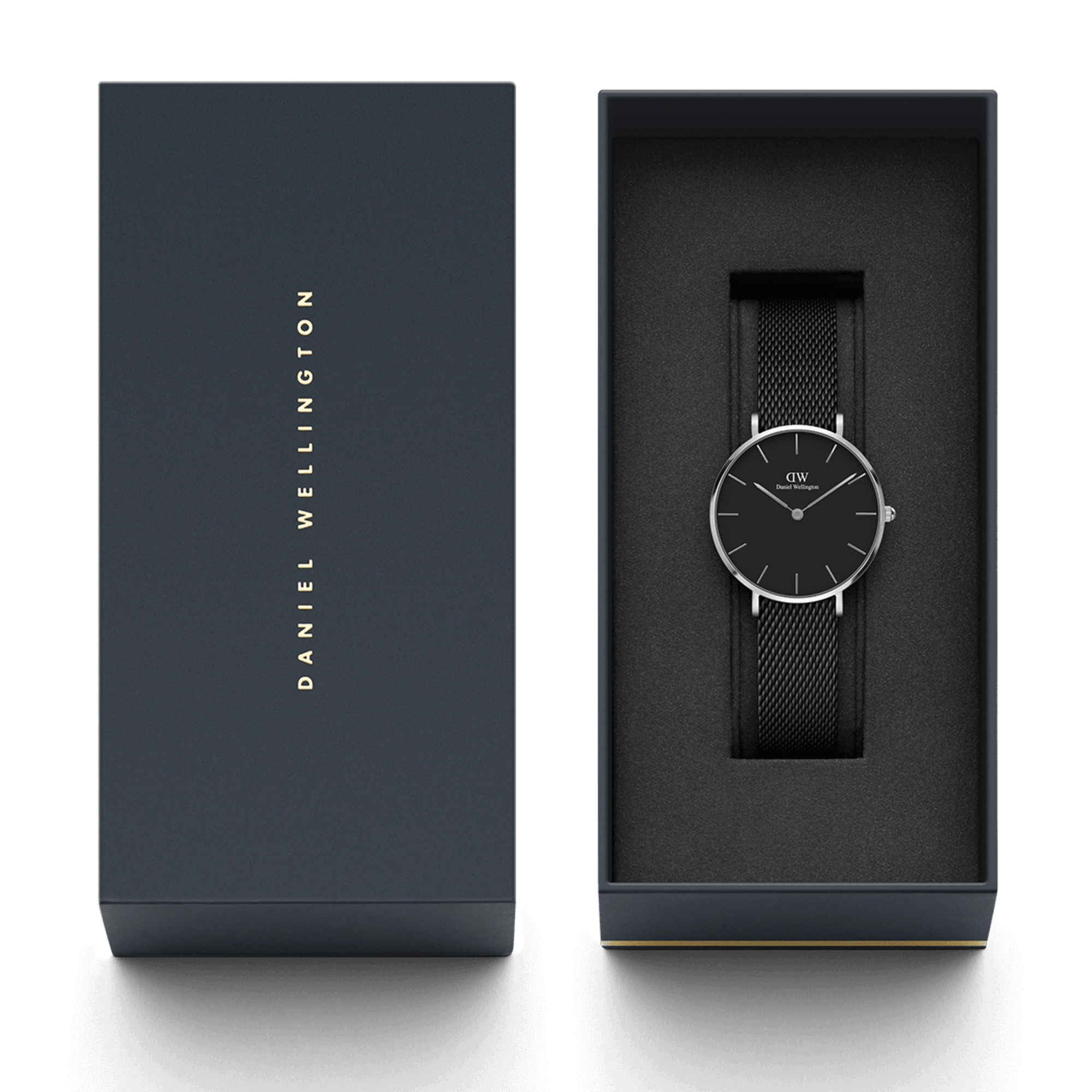 ELEGANT AND DISTINGUISHED. Enter the new season in timeless fashion with Petite Ashfield. This ultra-thin watch rests delicately on the arm and features a matte black mesh strap and a sophisticated black dial. Available with details in rose gold or silver.