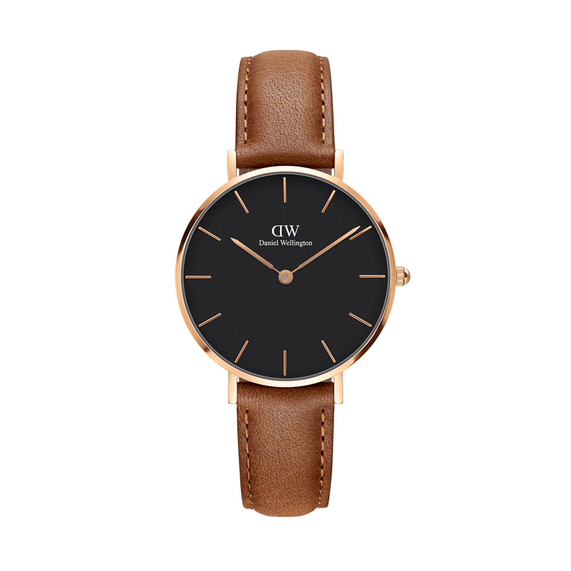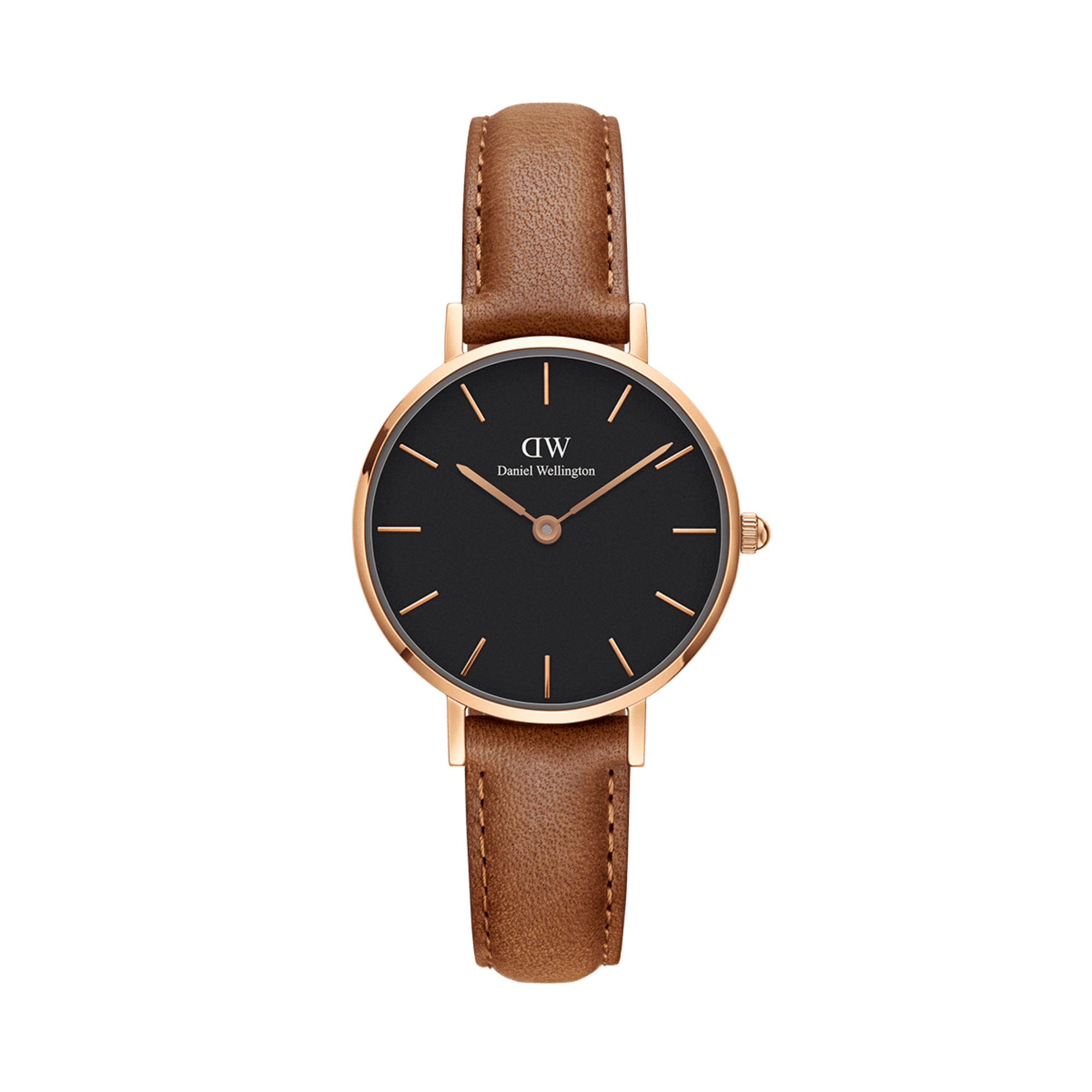 FOR THE REAL CONNOISSEUR. Adored for its vintage feel, the Durham strap holds a unique patina that deepens while the leather lightens beautifully where bent and stretched. The black dial matches beautifully with the light brown strap on this minimalist Petite watch.