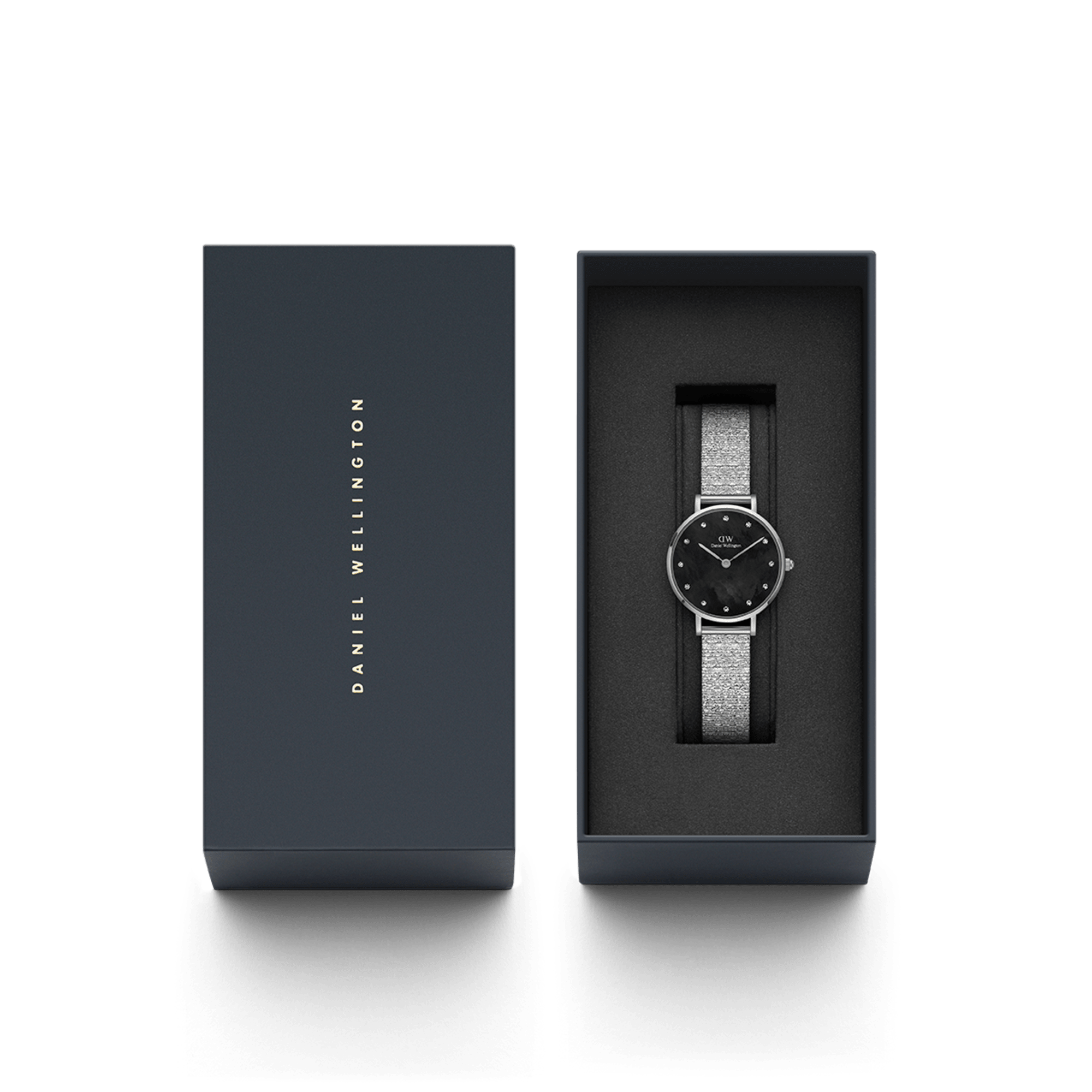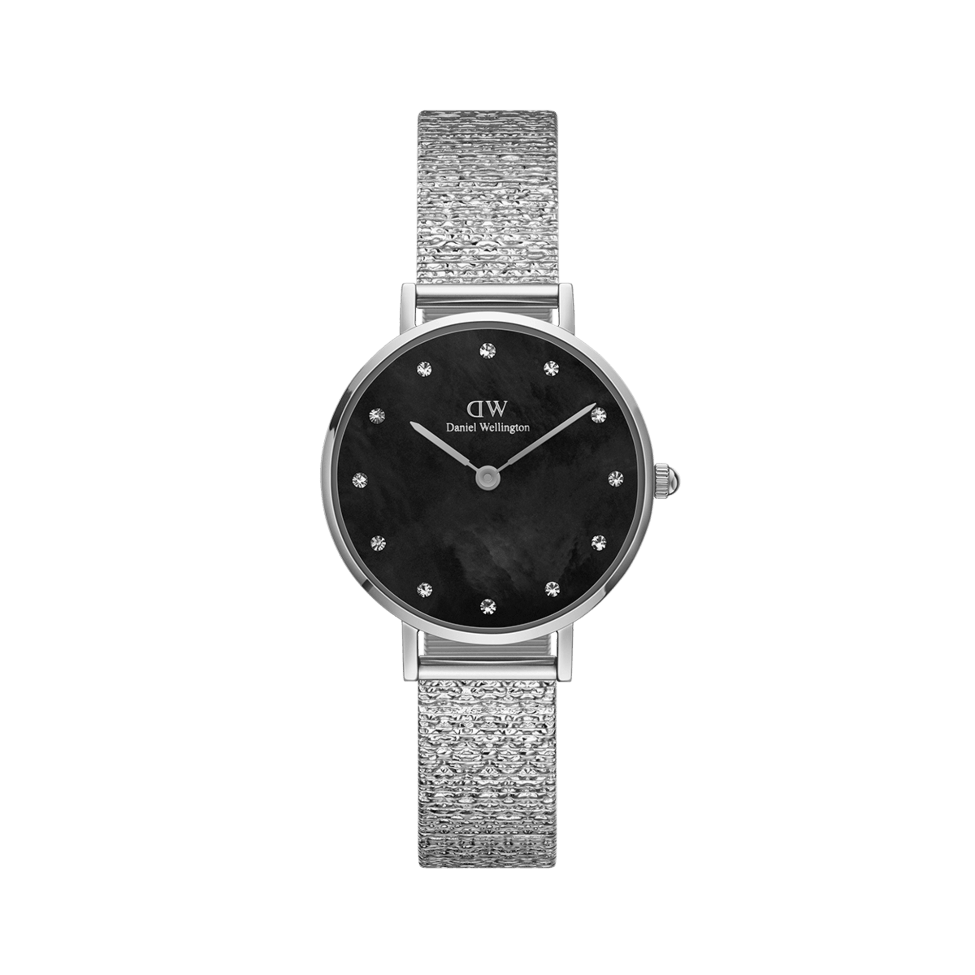 The Petite Lumine Pressed Piano displays maximum glamor in the minimum of space. Glistening crystals illuminate the iridescent black dial, with a unique pattern designed by nature itself. Available in three luxurious colors, the new Studio strap, with a pressed mesh pattern, matches the other elements in style and complexity.