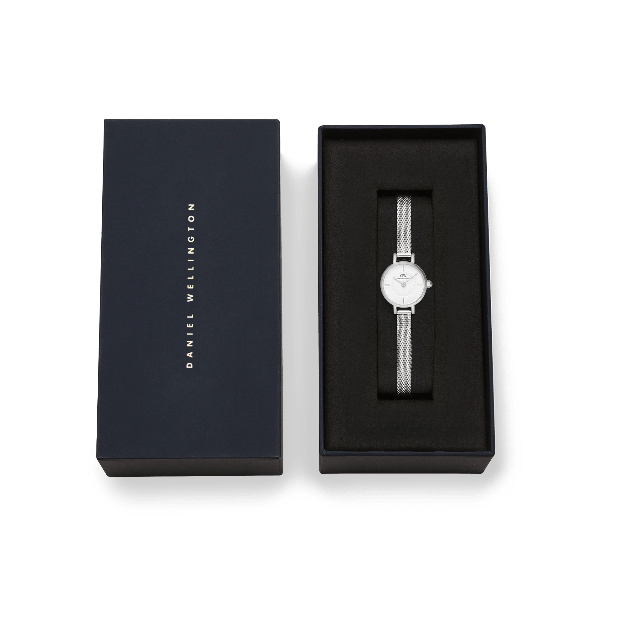 Meet the Petite Mini Sterling: an extension of our Petite watch collection—but shrunk down to irresistibly chic proportions. Taking design cues from our Quadro Mini watches, the white dial is framed by an inner circle ring, a detail that adds just a touch of extra elegance. The silver mesh strap is interchangeable, so you can effortlessly mix and match your style to the mood.