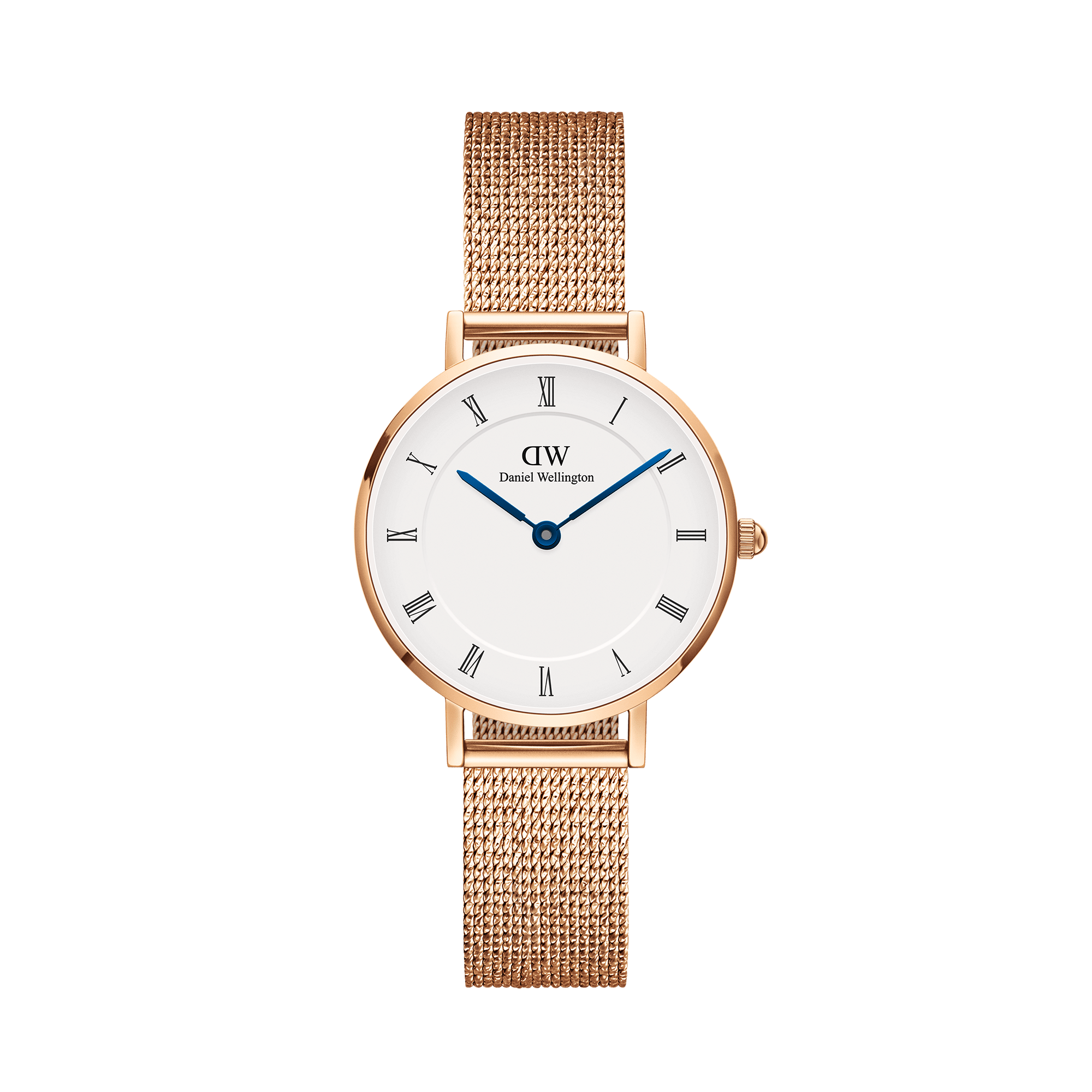 With vintage-inspired design details—like the Roman numeral dial and blue steel hands—this version of our Petite watch strikes just the right balance between old-school and trending now. Features an interchangeable pressed mesh strap in rose gold.
