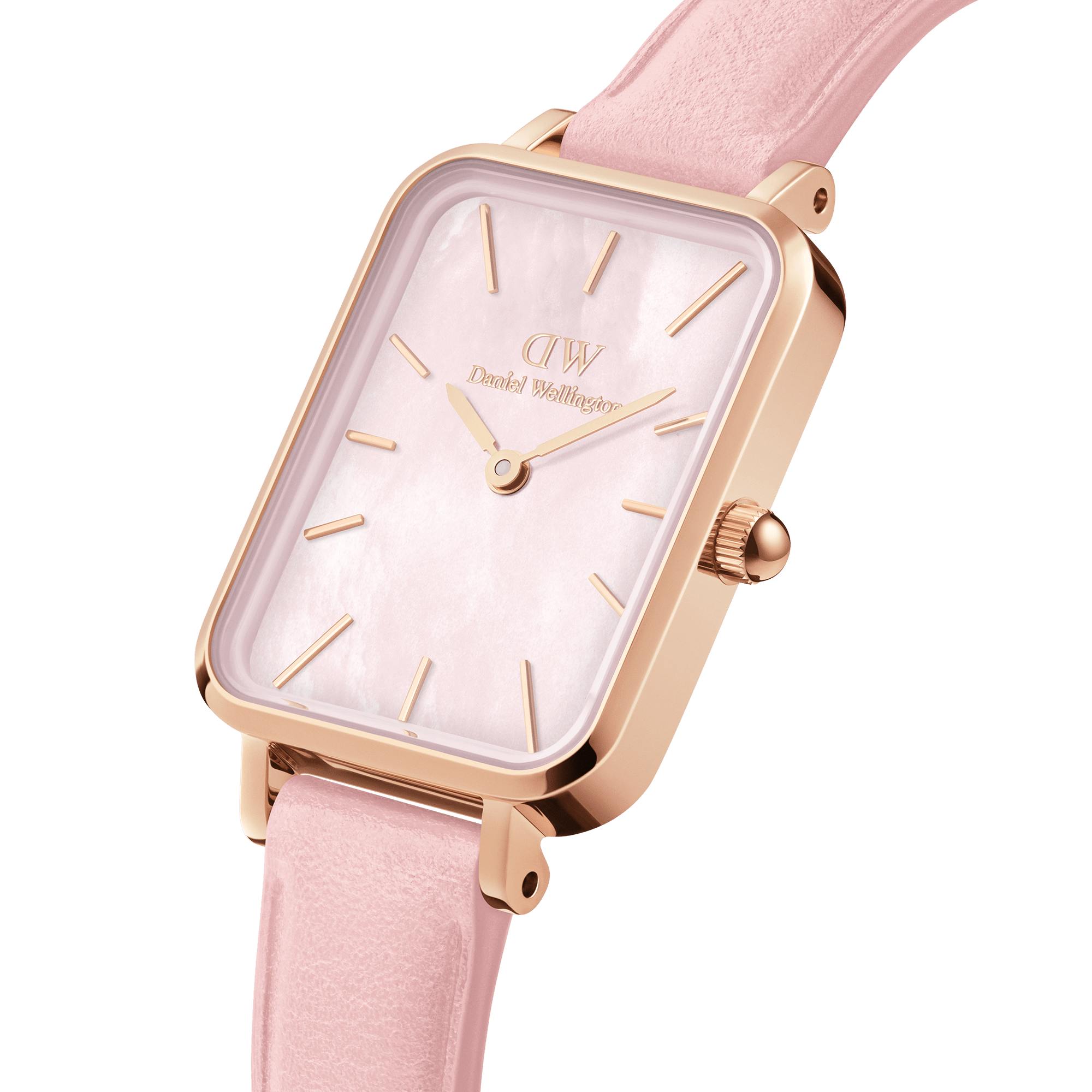 Cherry flowers are always beautiful, even if they're square-shaped. The Quadro Cherry Blossom combines the beauty of pastel tones with the sophisticated shimmer of genuine mother of pearl. Incrusted in a case made from rose gold plated stainless steel, this monochrome watch balances color with fine detailing and clear design...
