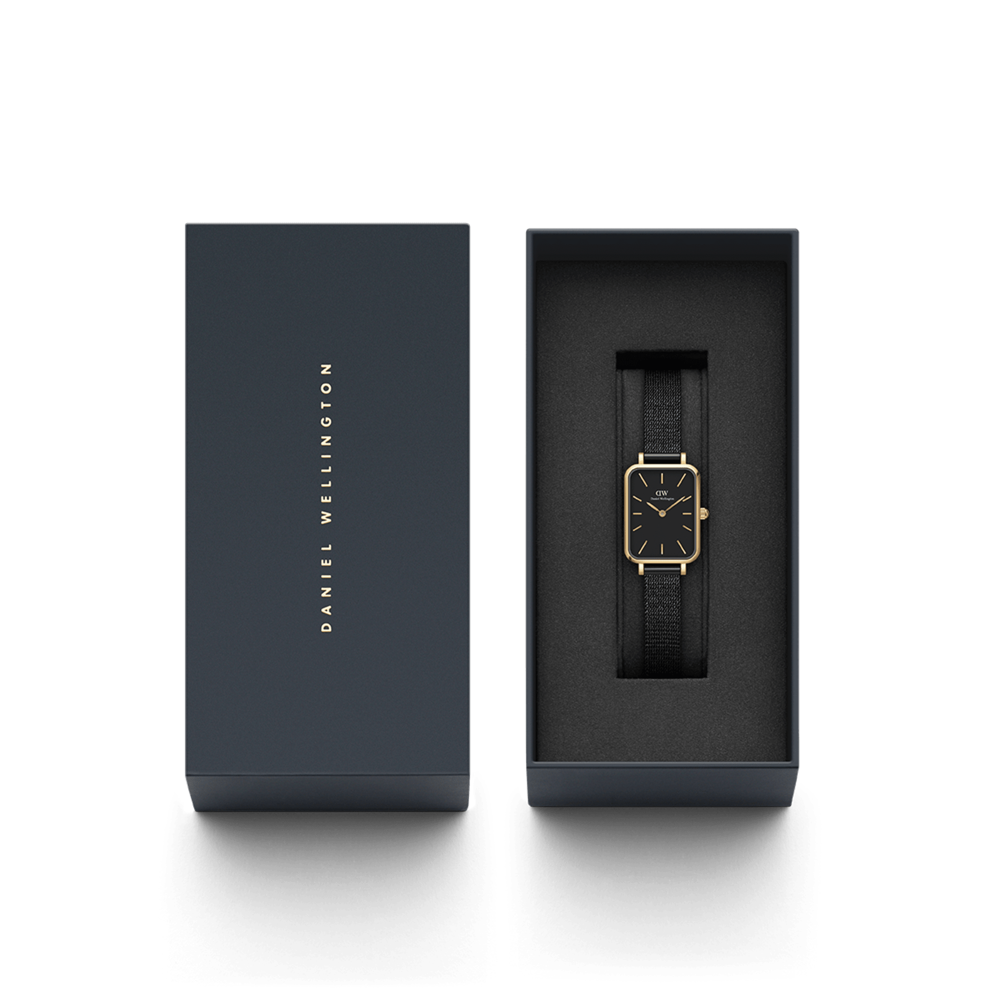 The Quadro Pressed Ashfield invites us to be curious. It challenges us to test limits and wonder how far we can go to pursue beauty and original design. This small women’s watch is almost 100% black, with its mesh bracelet and deep black dial, yet it’s incredibly expressive. The gold details of this square watch shimmer tastefully against the monochrome backdrop created by the dial and strap. So, accept the invitation to be curious and get the Quadro Pressed Ashfield or explore other black watches from our collection. Square watch with black mesh bracelet, black dial and gold details. Small women's watch.