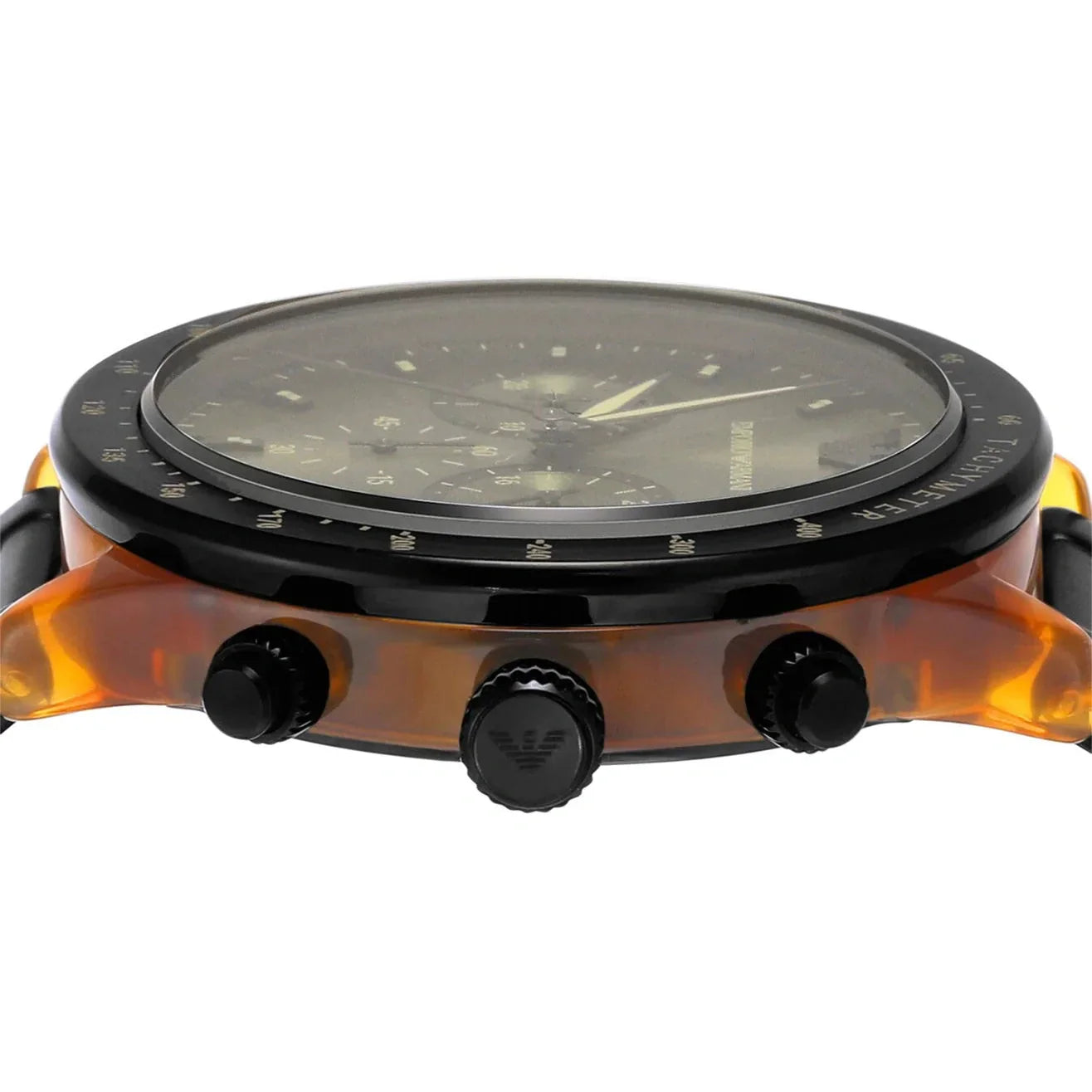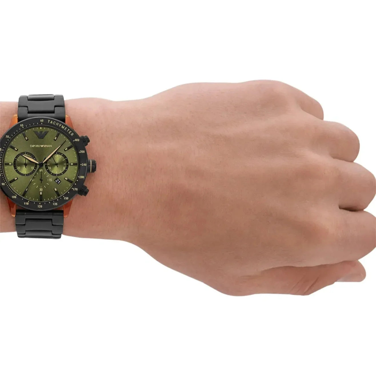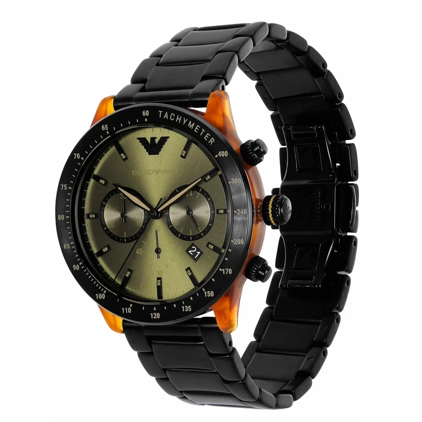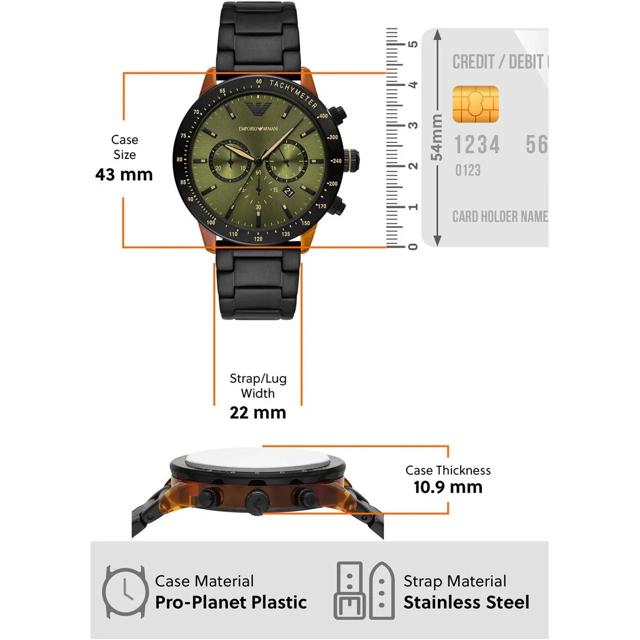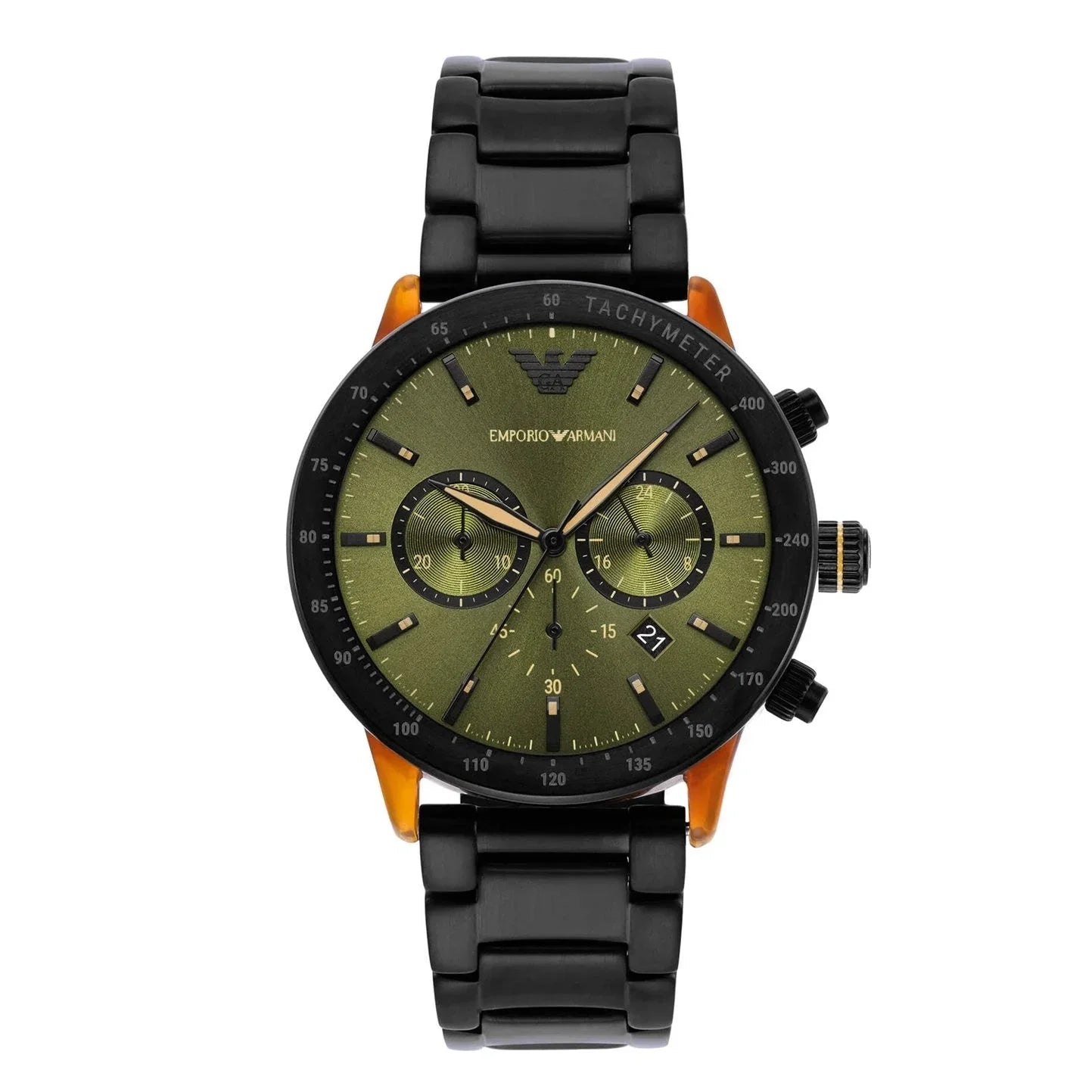 Discover the perfect blend of luxury and versatility with the Emporio Armani Men's Watch. Crafted from durable stainless steel, this watch boasts a 43 mm case and sunray dial with chronograph movement and a date window. With a subtle bracelet and water resistance up to 50 m, experience style and function in one innovative timepiece.