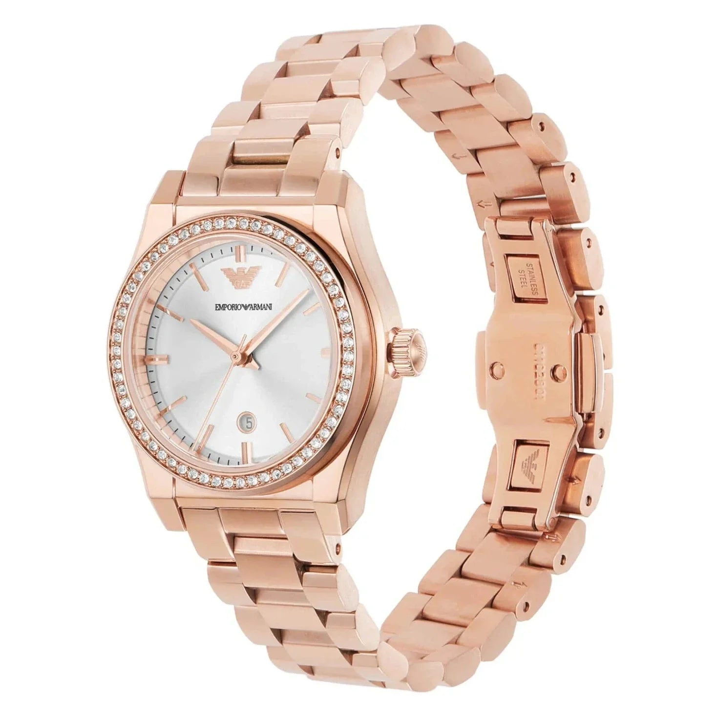 This Emporio Armani men's watch offers a timeless design and superior functionality. Crafted with precision, the watch features a stainless steel case and band, as well as a reliable quartz movement. Elevate your style and stay on schedule with this sophisticated timepiece.