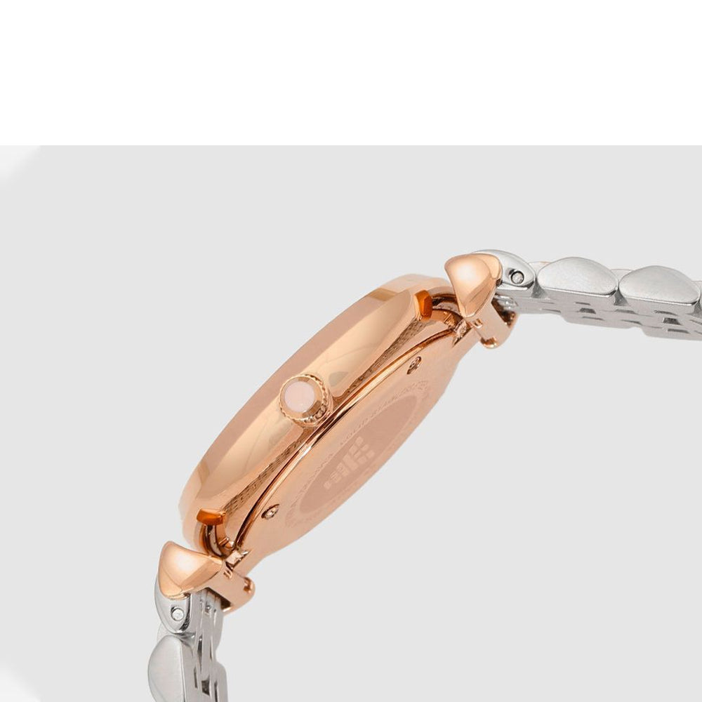 Go to the shopInfuse class to your attire with this women's analog watch. This 28 mm watch features a pink sunray dial with rose gold-tone stick indexes, two-hand movement and two-tone stainless steel bracelet.