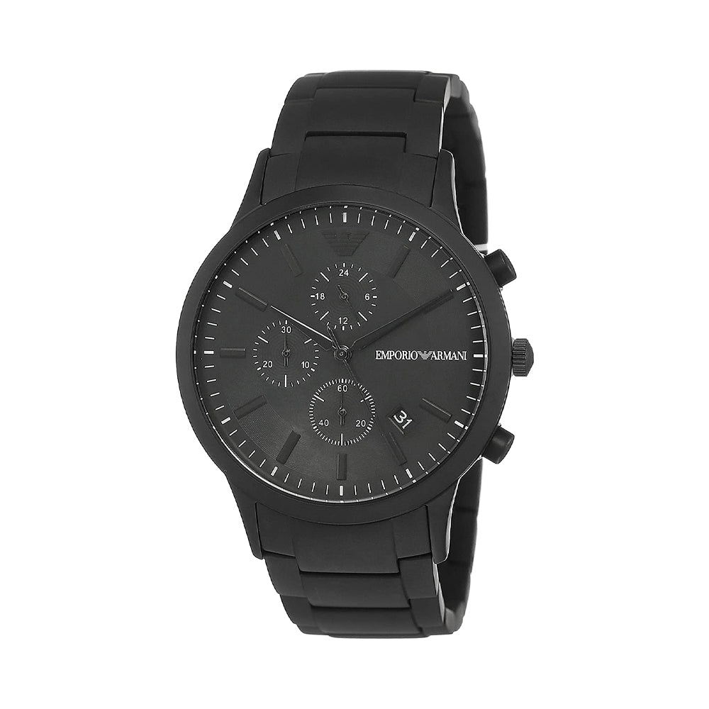 Design and structure are what sets a watch apart from others and this is done eloquently in this Emporio Armani chronograph watch for men. A classy black-three-link bracelet strap balances a black dial with raised stick accents in this Renato series men's watch. This watch would definitely elevate your look.