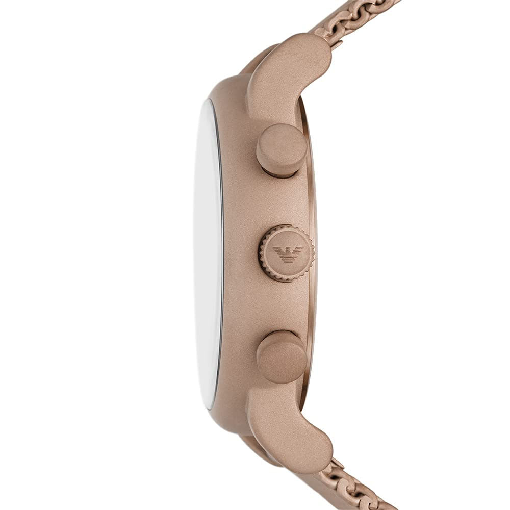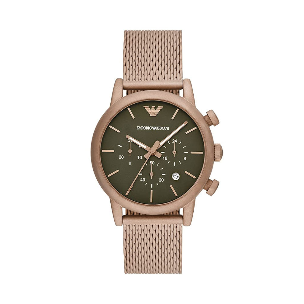 Amaze everyone around you by wearing this men's Analog watch from Emporio Armani. The green round dial is protected by a mineral glass. The stainless steel strap comes in a beige hue that further elevates the look of the timekeeper. Besides, it is completed with a deployment clasp to ensure a secure fit on the wrist.