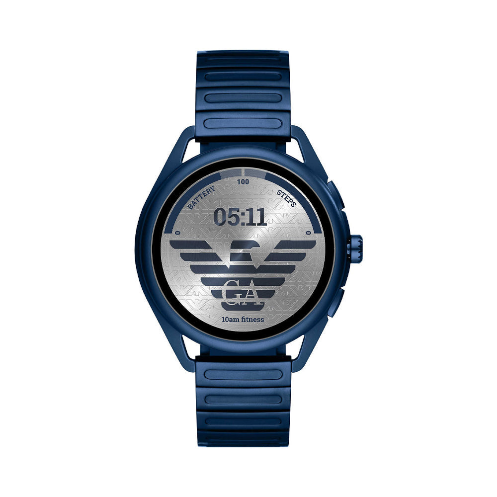 Complete with a matte blue stainless steel bracelet, this 44 mm smart watch offers a new highly personalized experience with Wear OS by Google technology. It is compatible with iPhone and Android phones. Wear OS by Google works with phones running on Android 6.0+ (excluding Go edition) and iOS 10.0+.