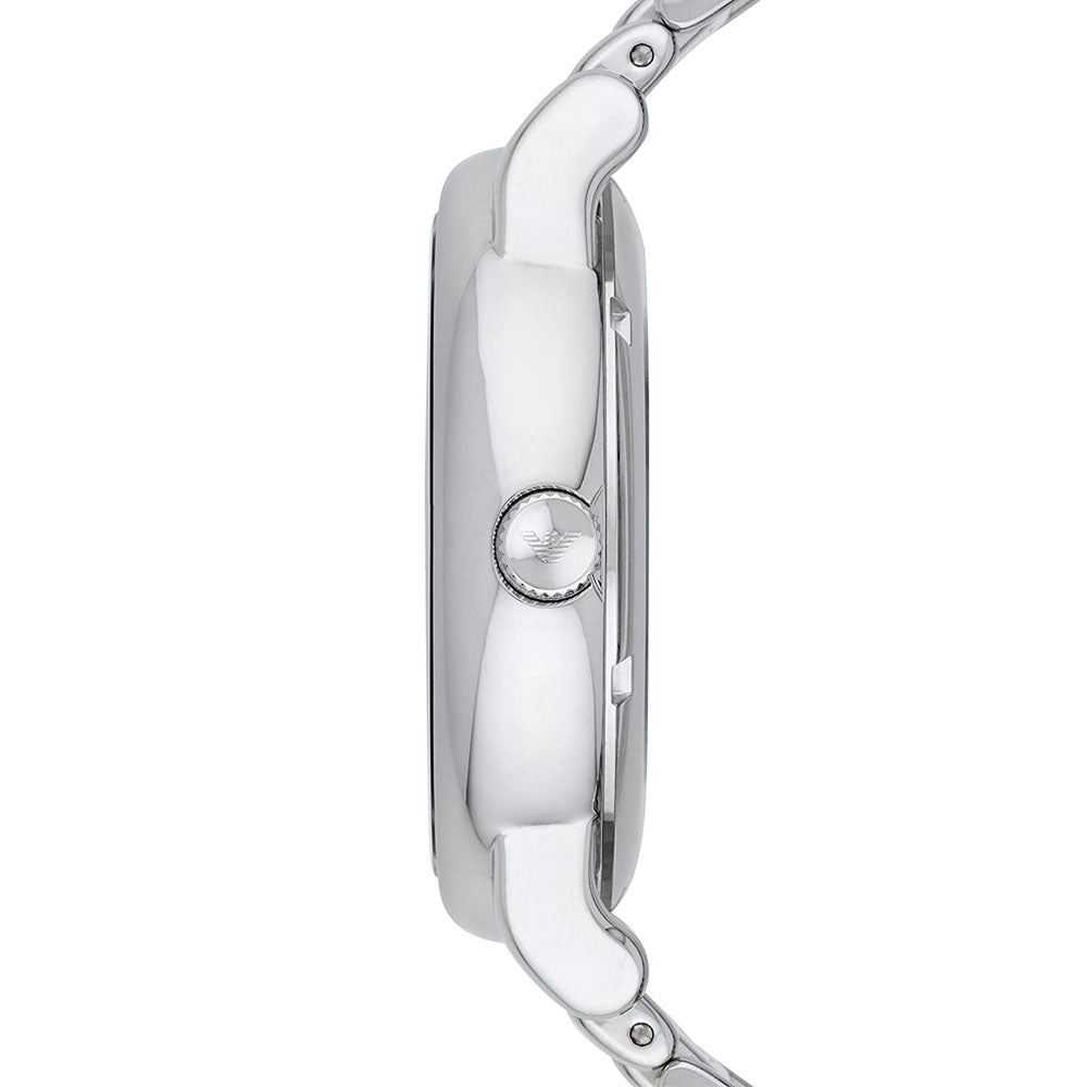 Get admired by your friends when you sport this analogue watch, which comes with a unique display. It has a crown, which helps you to adjust the time, while the stick time markers give it a classy look. Moreover, its round dial is perfectly complemented by the metallic bracelet.You will definitely look classy wearing this analogue watch presented by Emporio Armani.
