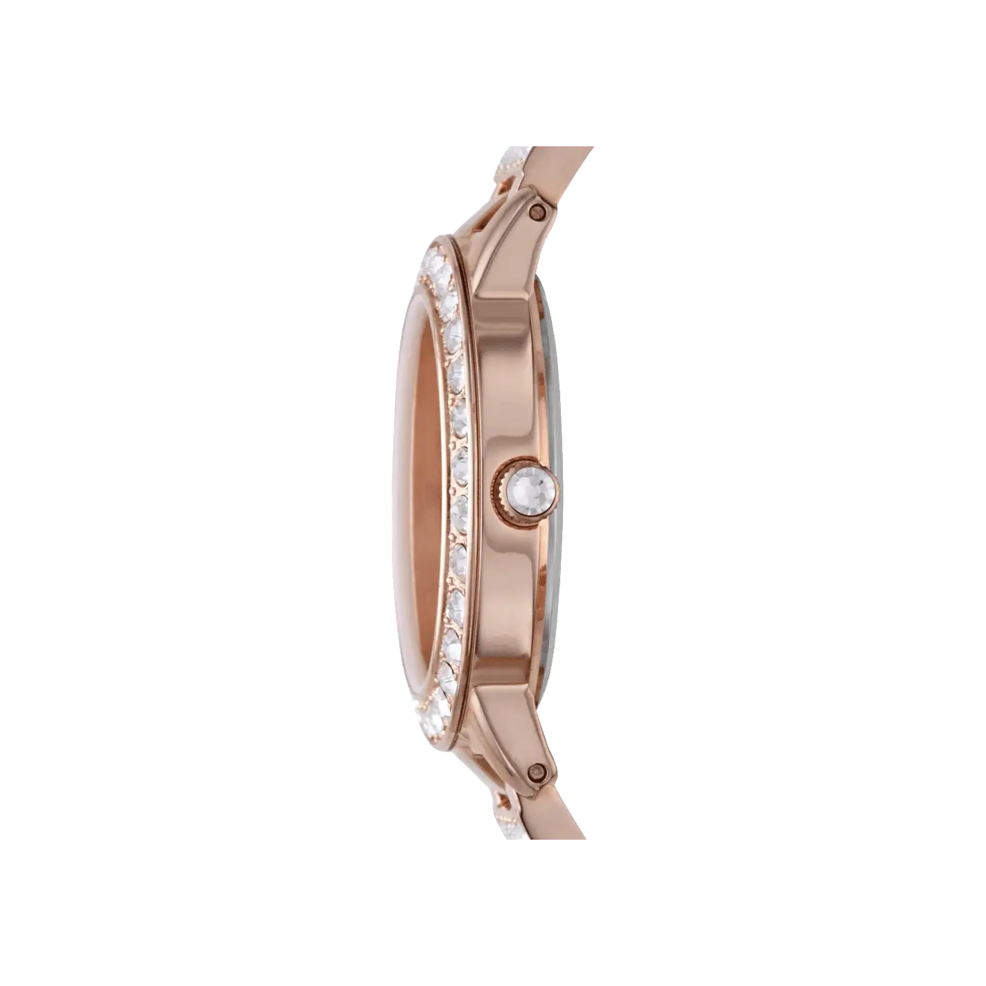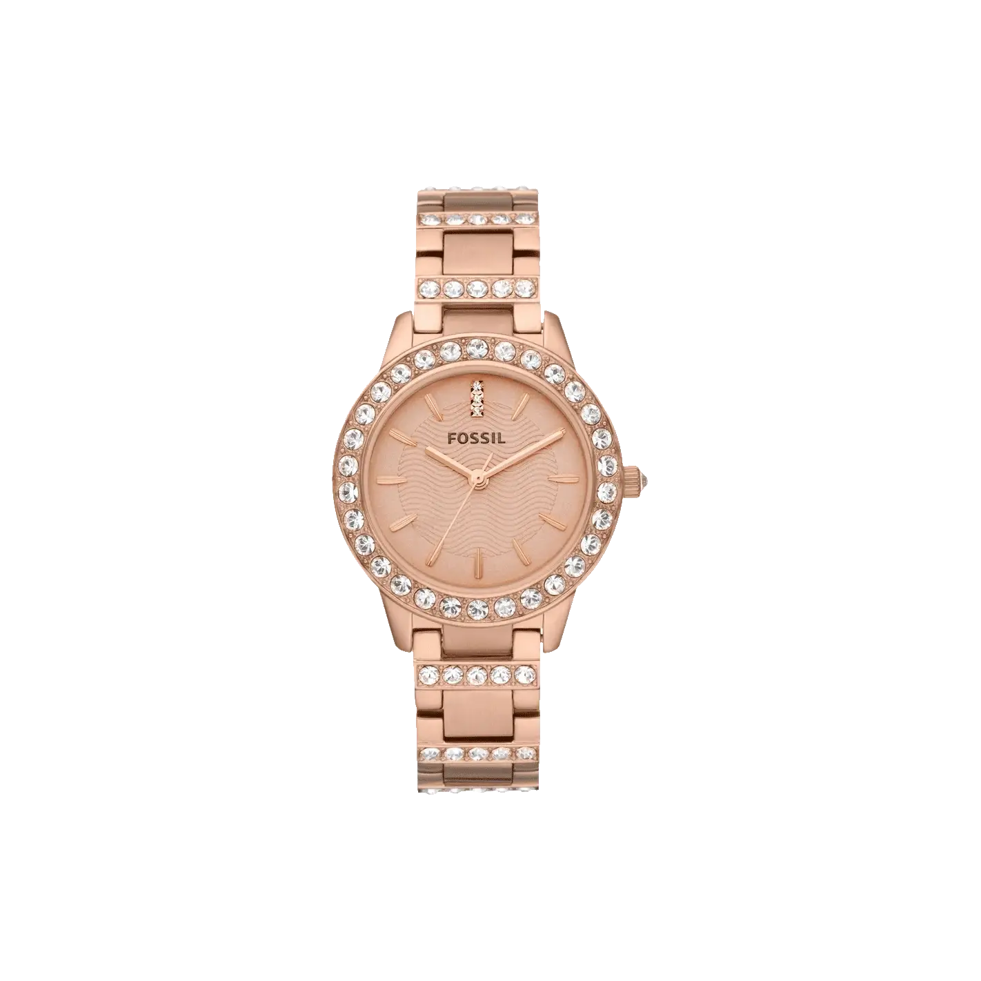 Absolutely eye-catching, this rose-gold women’s analog watch from Fossil will act as the statement piece if you want to give yourself a refined look. Bold stick markings and a rose enamel dial with pave embellished top ring. A rose-tone case with a rose-gold tone glitz bracelet which helps you define...