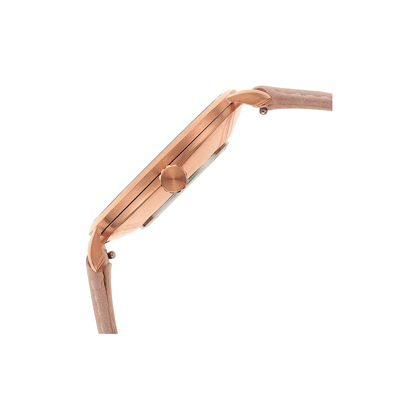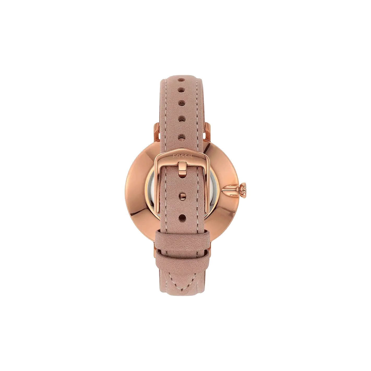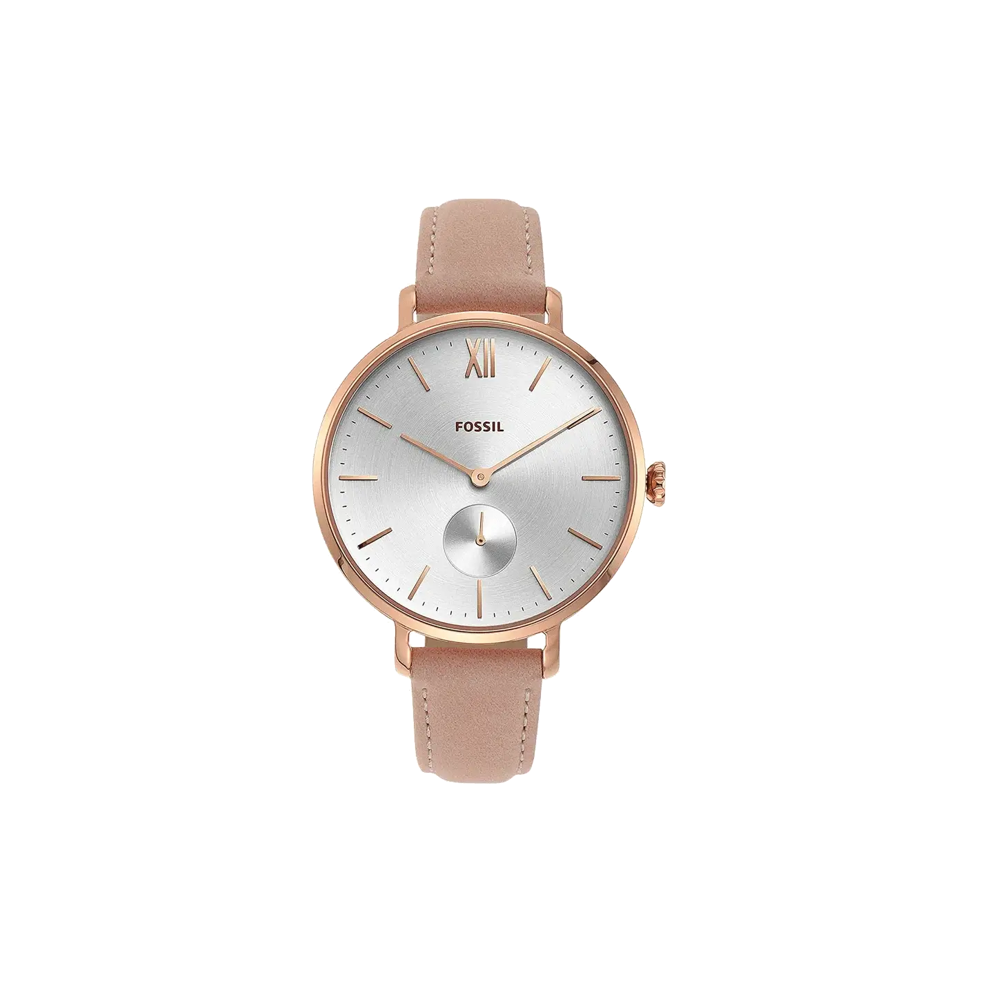 Fossil fuses traditional design with contemporary sensibilities for Its svelte two-tone Kalya timepiece. A sleek circular case and tapered bracelet frame a minimalist brushed dial which is accentuated with Roman and linear indexes and a seconds dial at 6 o'clock. This 36 mm Kalya watch features a silver dial and...