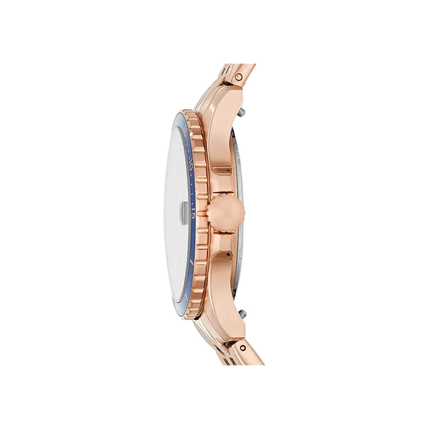 Very few watches have the potential to captivate you in the very first glance. This rose-gold women's watch from the House of Fossil, however, does a lot more than that. Featuring a glamorous analog watch with a blue sunray dial and three-hand date movement which delivers refined functionality, while a...