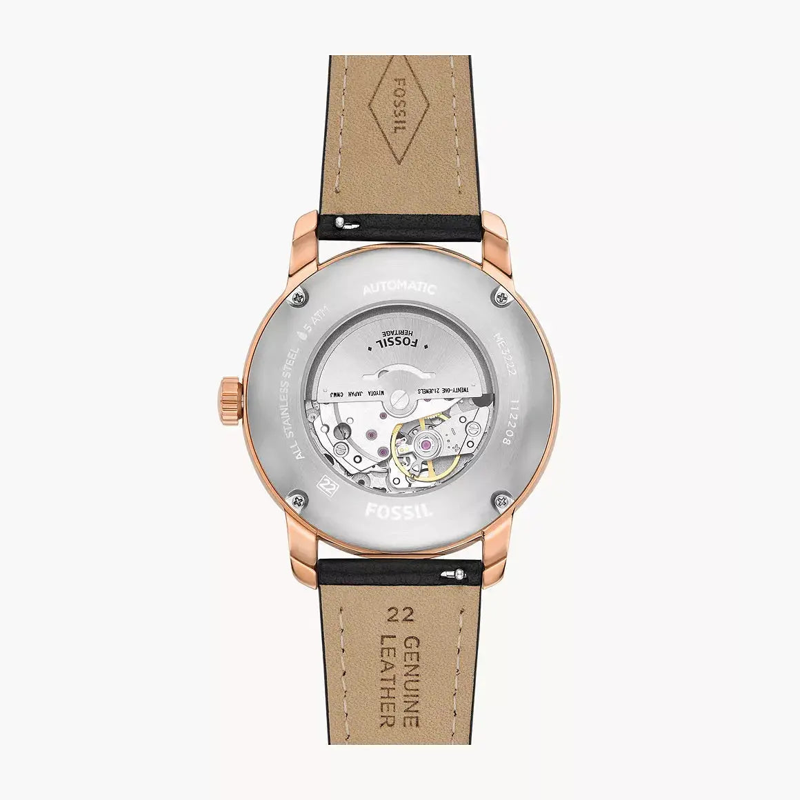 Go to the shopThis 43mm Fossil Heritage watch features a black matte dial, automatic movement and black LiteHide™ leather strap.