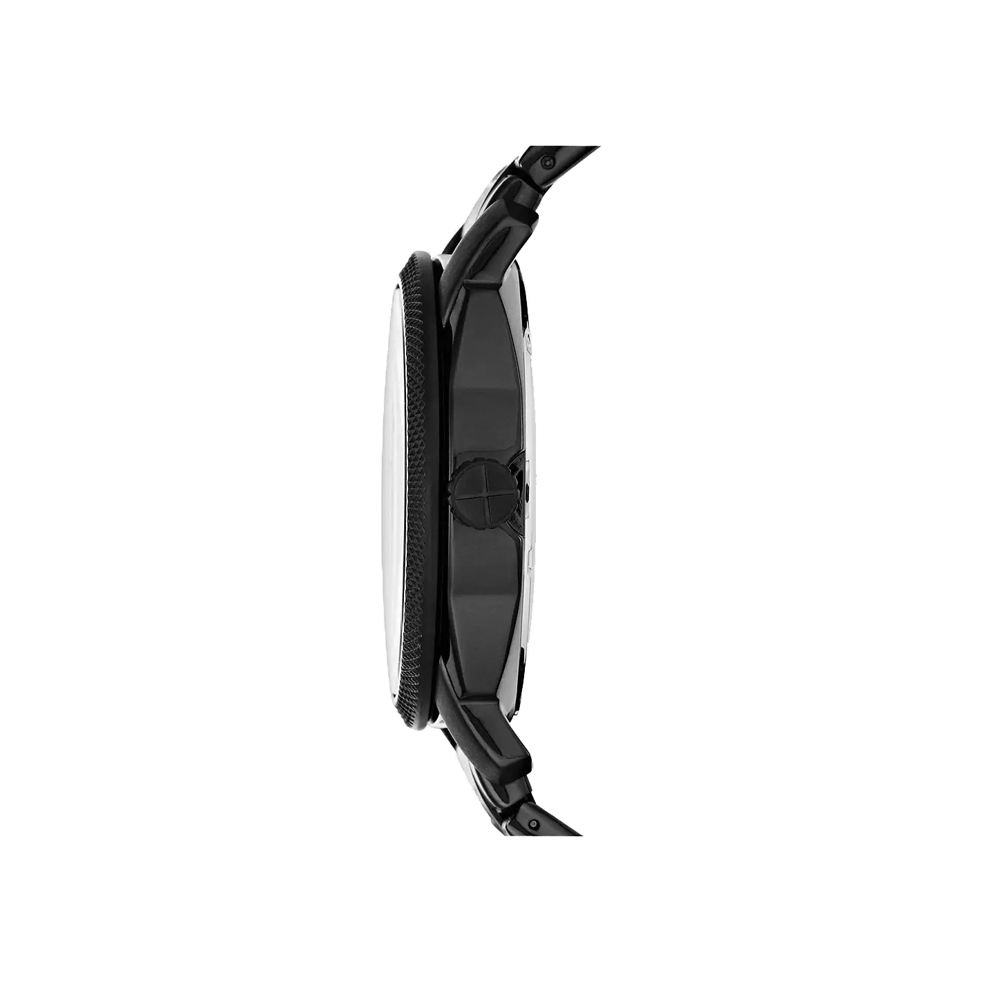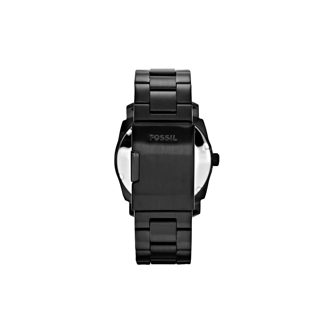 Ready for action? This tough-but-timeless Machine from Fossil is built to go to the distance with knurled steel case and rotating topring. This watch features black accented dial, silver stick markings at all hour, three hand movement with a date window and a black bracelet which is secured by bracelet...