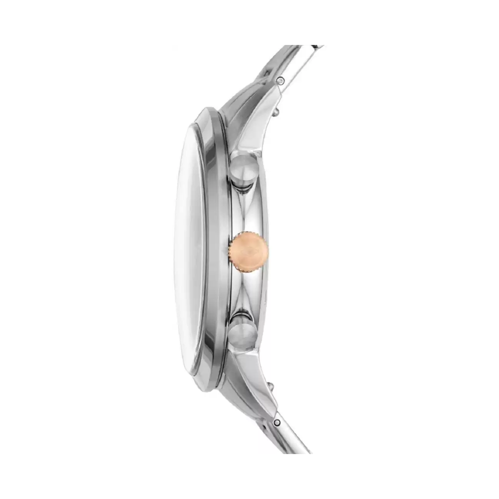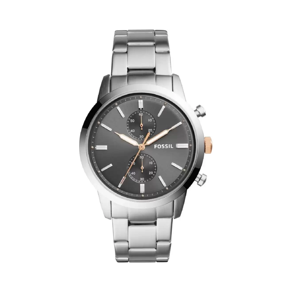 With a minimalistic approach, this men's analog watch from Fossil's Townsman collection draws attention with its refined construction. Be it desk, dinner or daily commute, this watch will be the best-dressed essential for you. Powered by a quartz movement, this timepiece is completed with a stopwatch functionality and two subdials....