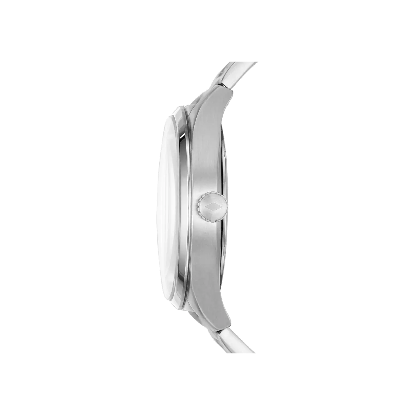 Yet another simple and classy Mathis series watch for men, this one features a silver three-link bracelet and a simple three hand, quartz movement dial. It is encased in a stainless steel case, and the markings have a line structure. The material is water resistant making it highly reliable. It goes well with any formal outfit.lt