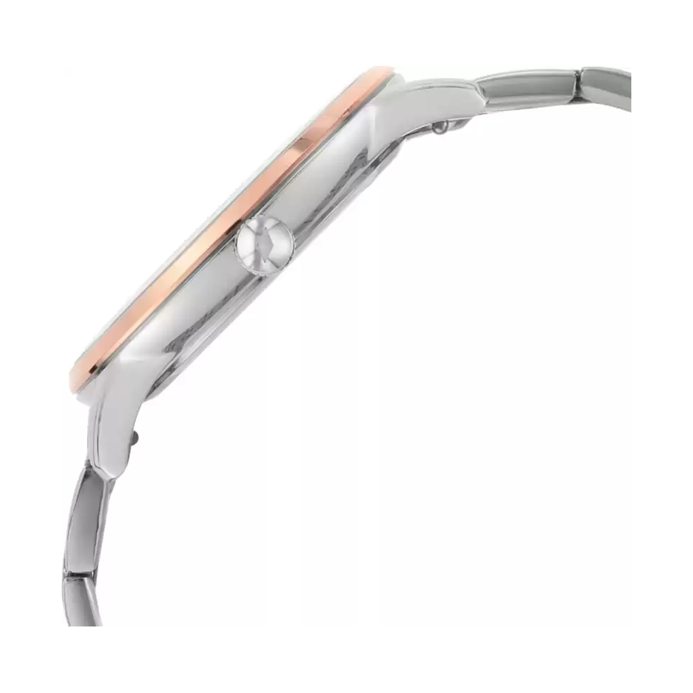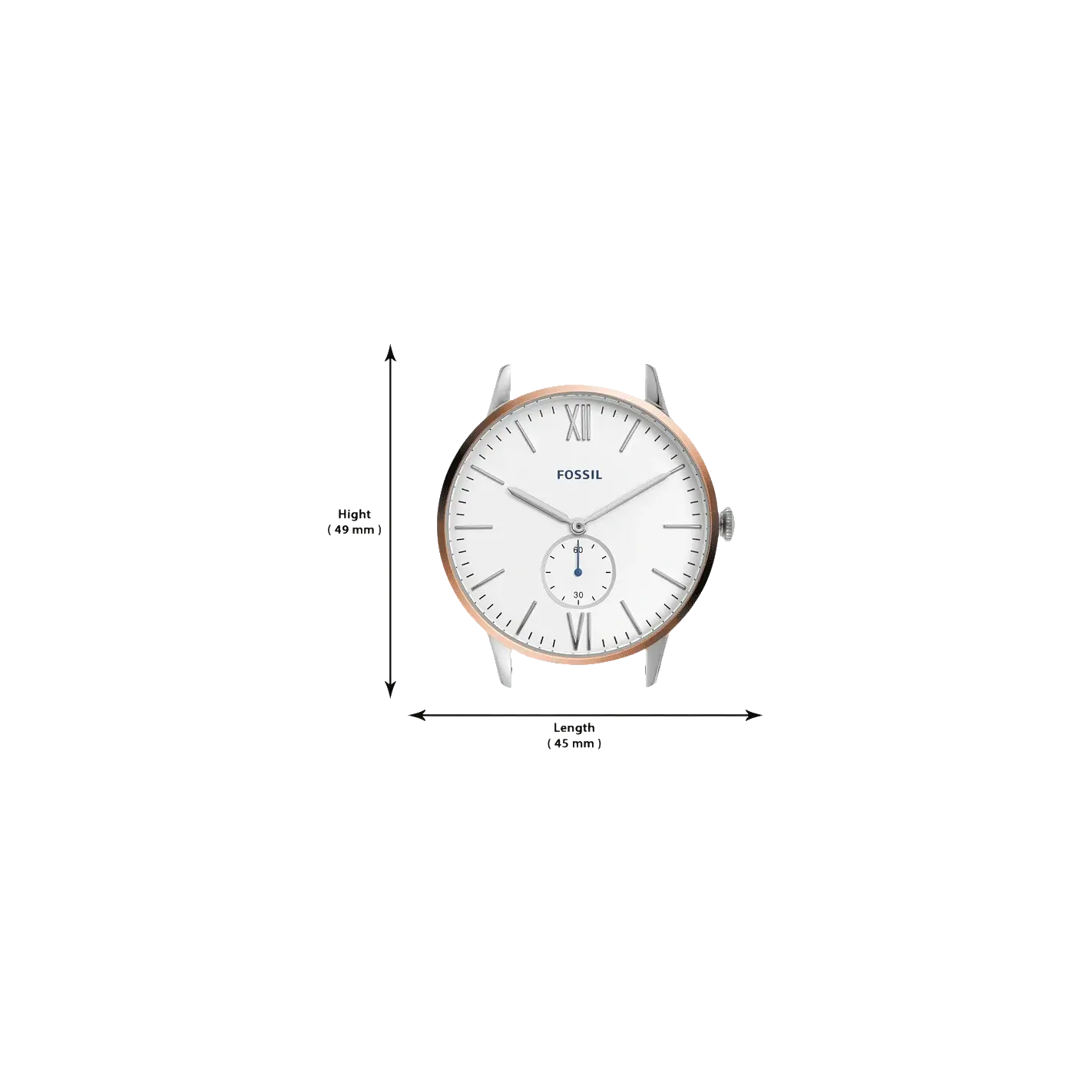 Vaunting modern-day style, this pair of analog watches from Fossil is a must-have for a couple. The men's watch is encased in a 42mm case and has a white satin dial, while the women's watch is nestled in a 30mm case and exudes mother of pearl dial, a glitz bezel...