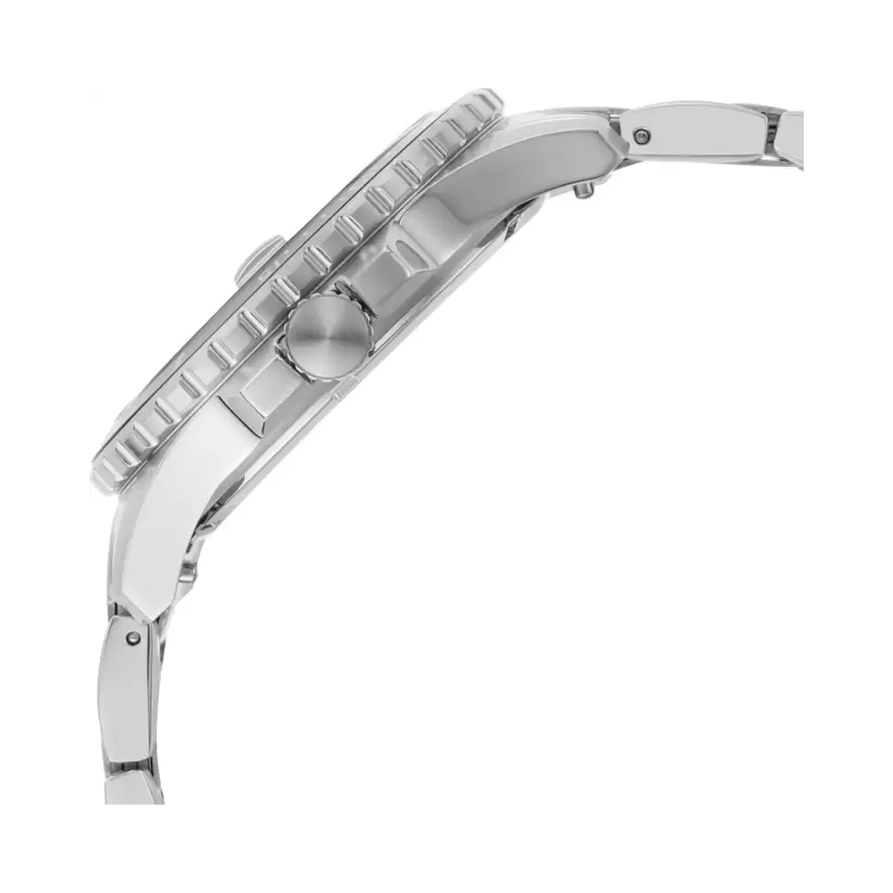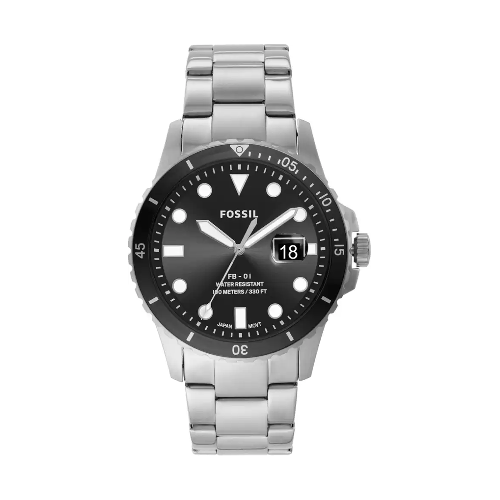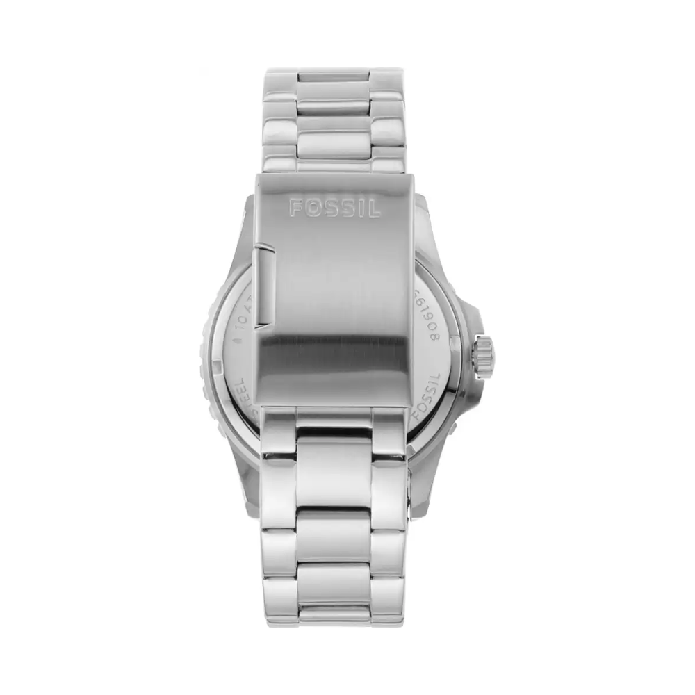 Effectively combining functionality and modern-day style, this men's analog watch from the Fb-01 collection by Fossil is a must-have timepiece. This electronic timekeeper features a quartz crystal that oscillates when current is applied to it. Its stainless steel strap vaunts an elegant silver hue that enhances the look of the...