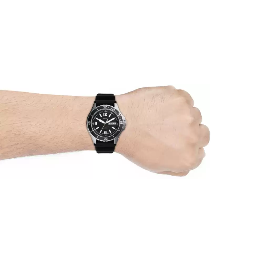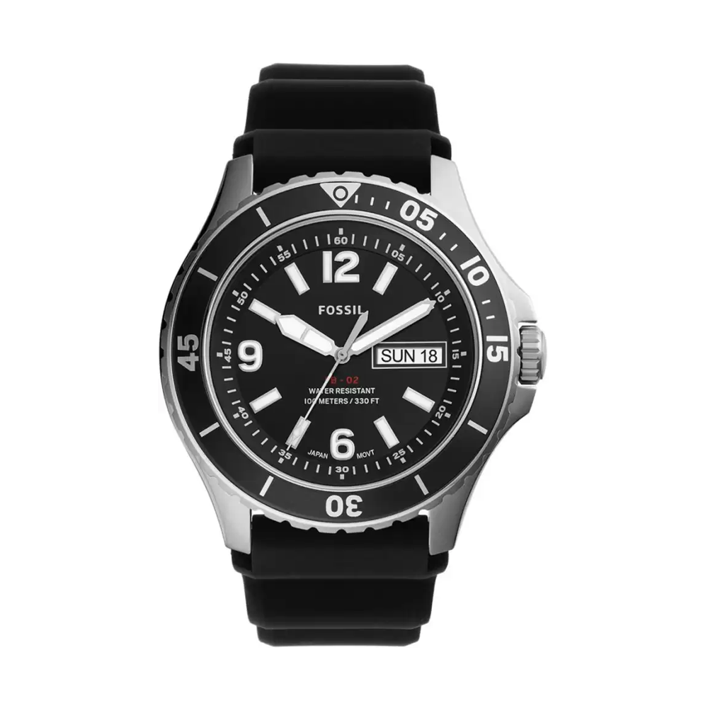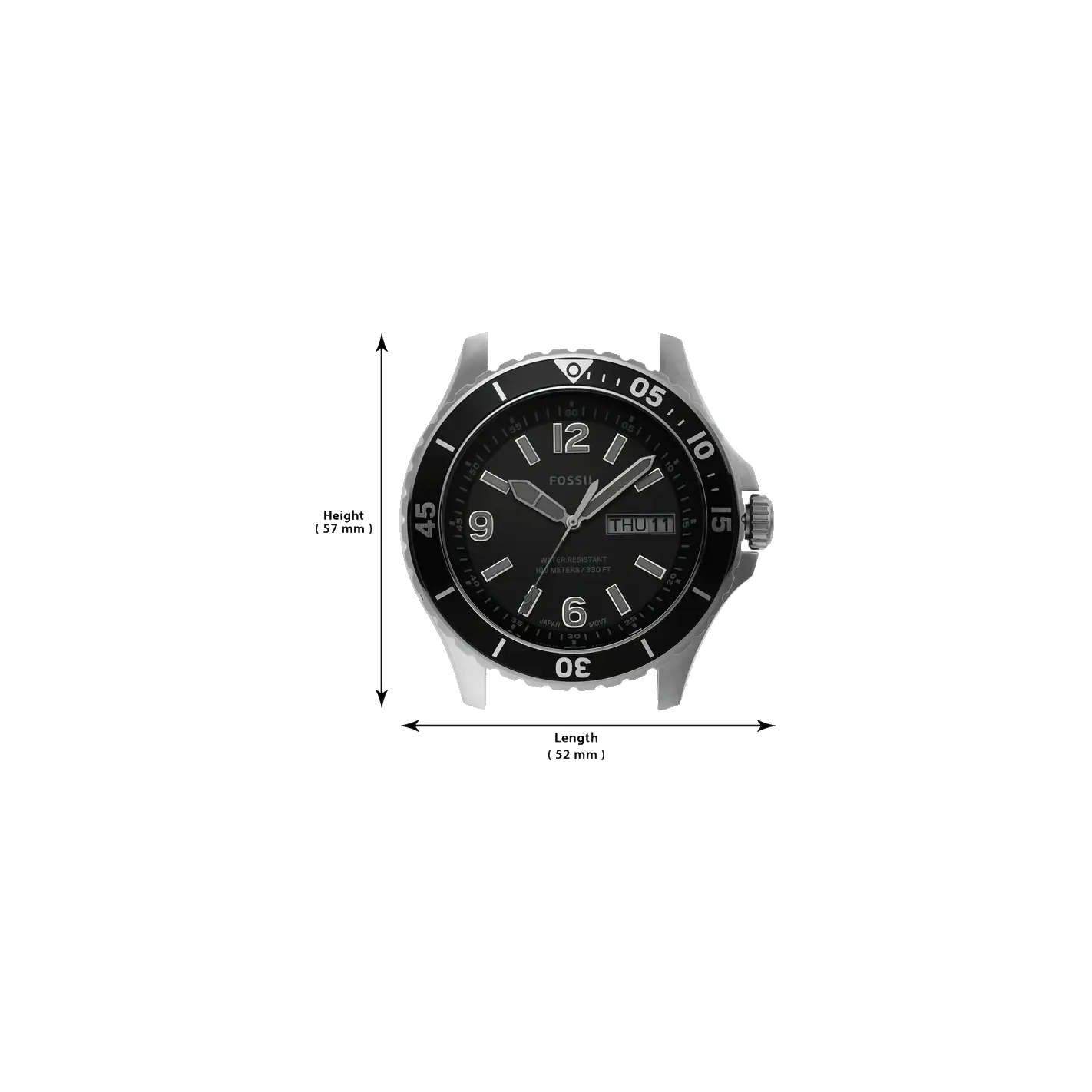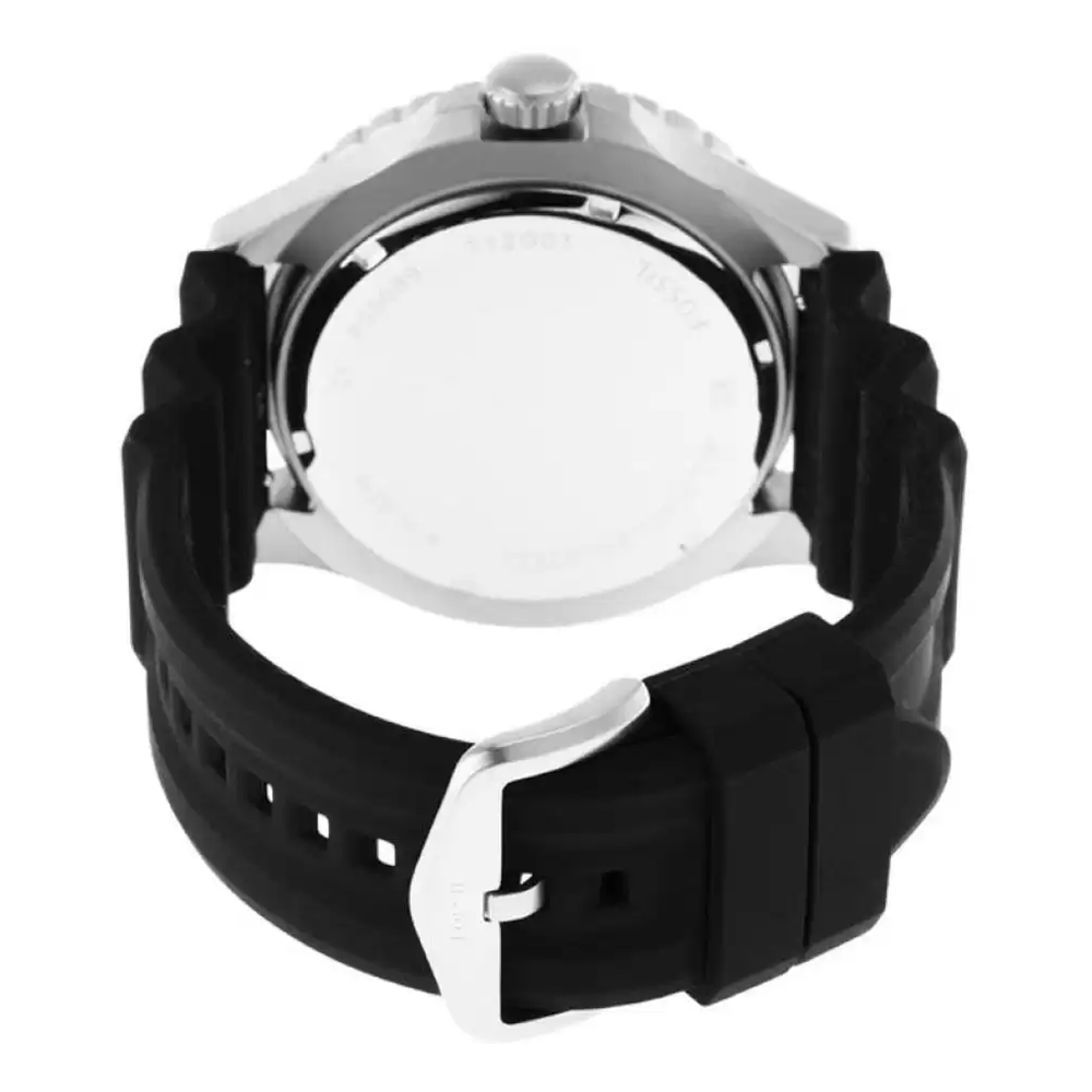 Everyone will appreciate your fine taste in style as you wear this men's analog watch from the FB-02 collection by Fossil. This electronic timepiece features a quartz crystal that oscillates when current is applied to it. Functional on a quartz movement, the black round dial is protected by a mineral...