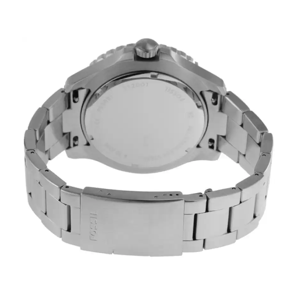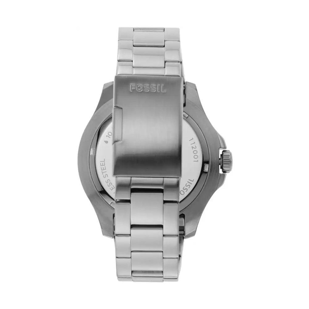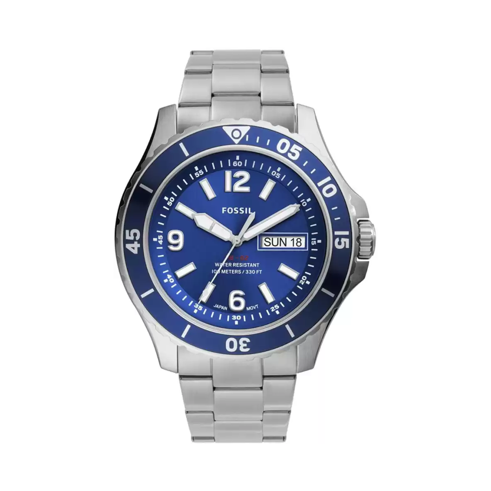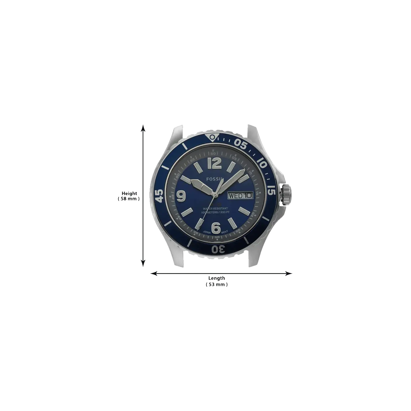 Move your wrist in style by wearing this men's analog watch from the FB-02 collection by Fossil. This electronic timepiece features a quartz crystal that oscillates when current is applied to it. Functional on a quartz movement, the blue round dial is protected by a mineral glass. It showcases plain...