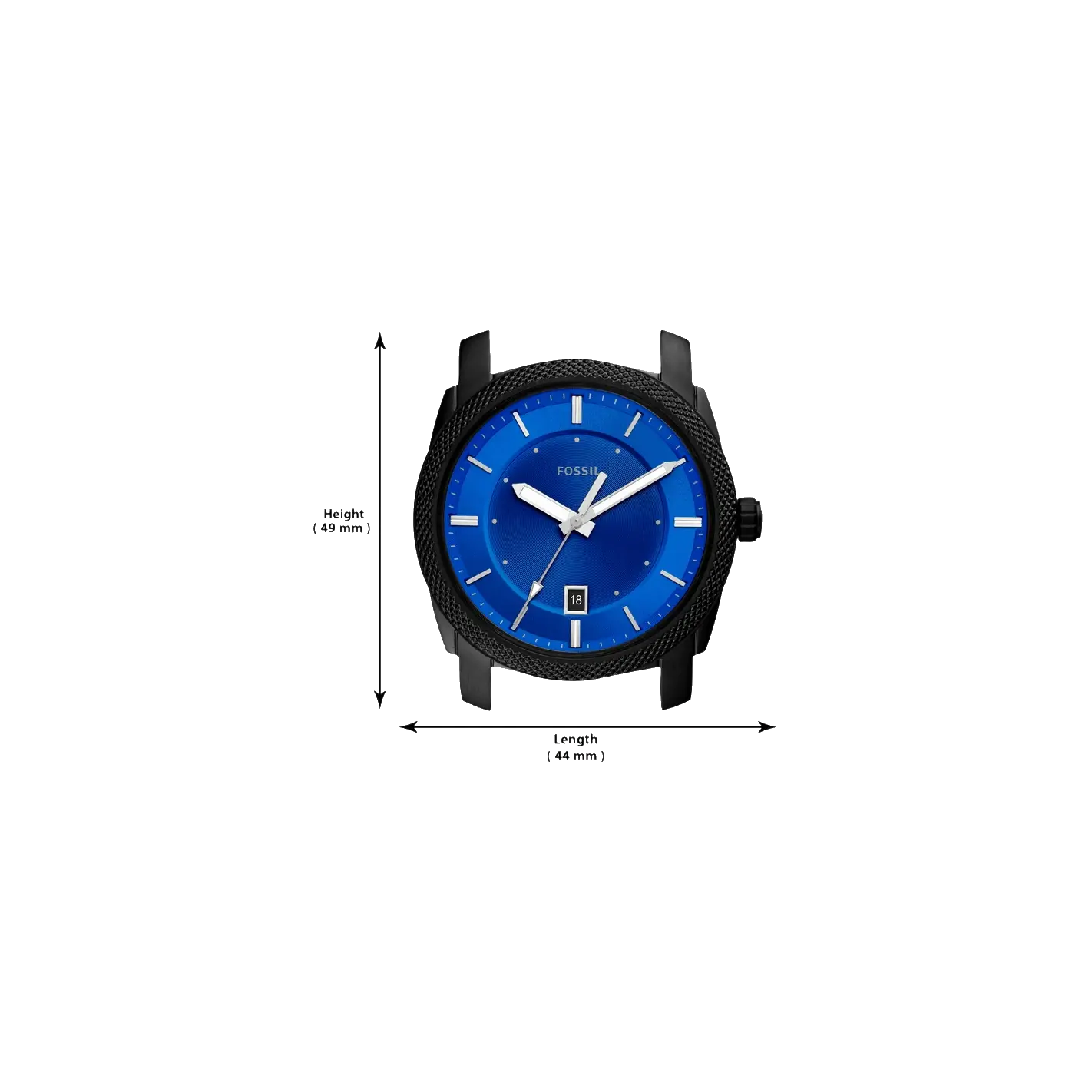With it's minimalistic approach, this watch from the House of Fossil for Men's offers an insight into the company's glorious history. This analog watch from the 'Machine Series' features a blue sunray dial and three-hand date moveMen'st which makes it more appealing. The watch is held by a black stainless...