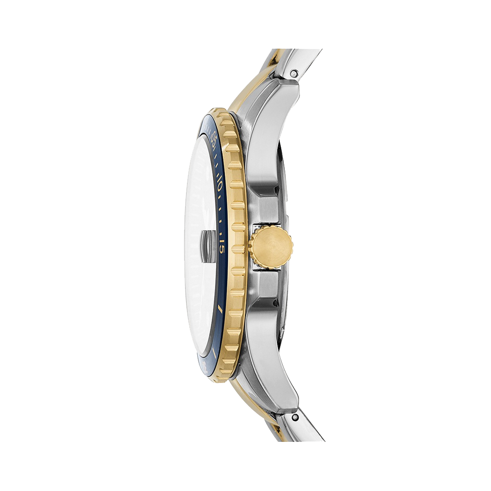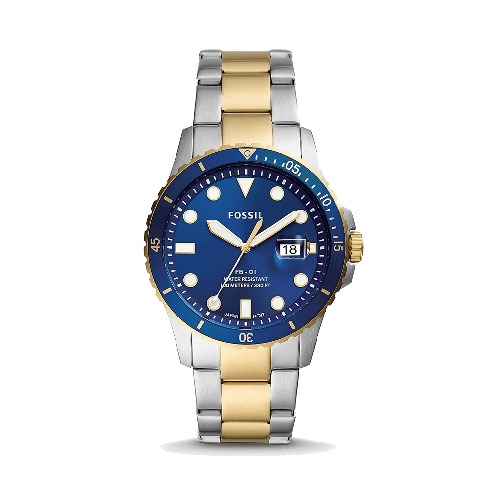 The FB-01 watch brings together Fossil's iconic heritage, distinctive shape and round dial revitalized with the vivid blue dial for a true game-changer, one of a kind, time piece. The perfect dusk to dawn accessory it features a two-tone link bracelet in gold and silver. Its 42mm dial also showcases...