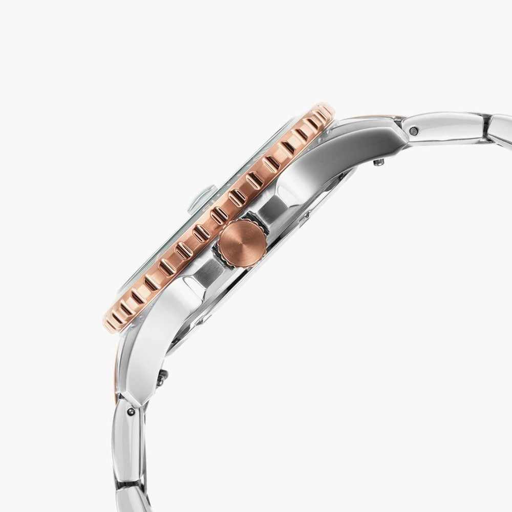 The FB-01 analog watch from Fossil brings together Fossil's iconic heritage, distinctive shape and round dial revitalized with the vivid green hue for a true game-changer and one-of-a-kind timepiece. This perfect dusk to dawn accessory features a 42 mm sunray dial, plain three-hand date functionality and a stainless steel bracelet.