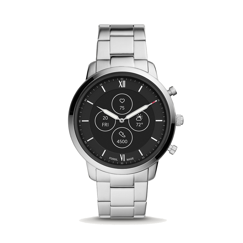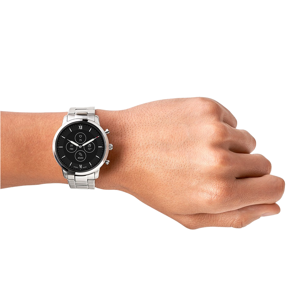 If minimalism is your thing, then look no further than Fossil's Neutra smartwatch. This elegant style was designed with the modern gentleman in mind. This 45mm Neutra hybrid smartwatch features a silver-tone stainless steel bracelet and an always-on readout display so you can get your heart rate, message previews, weather...